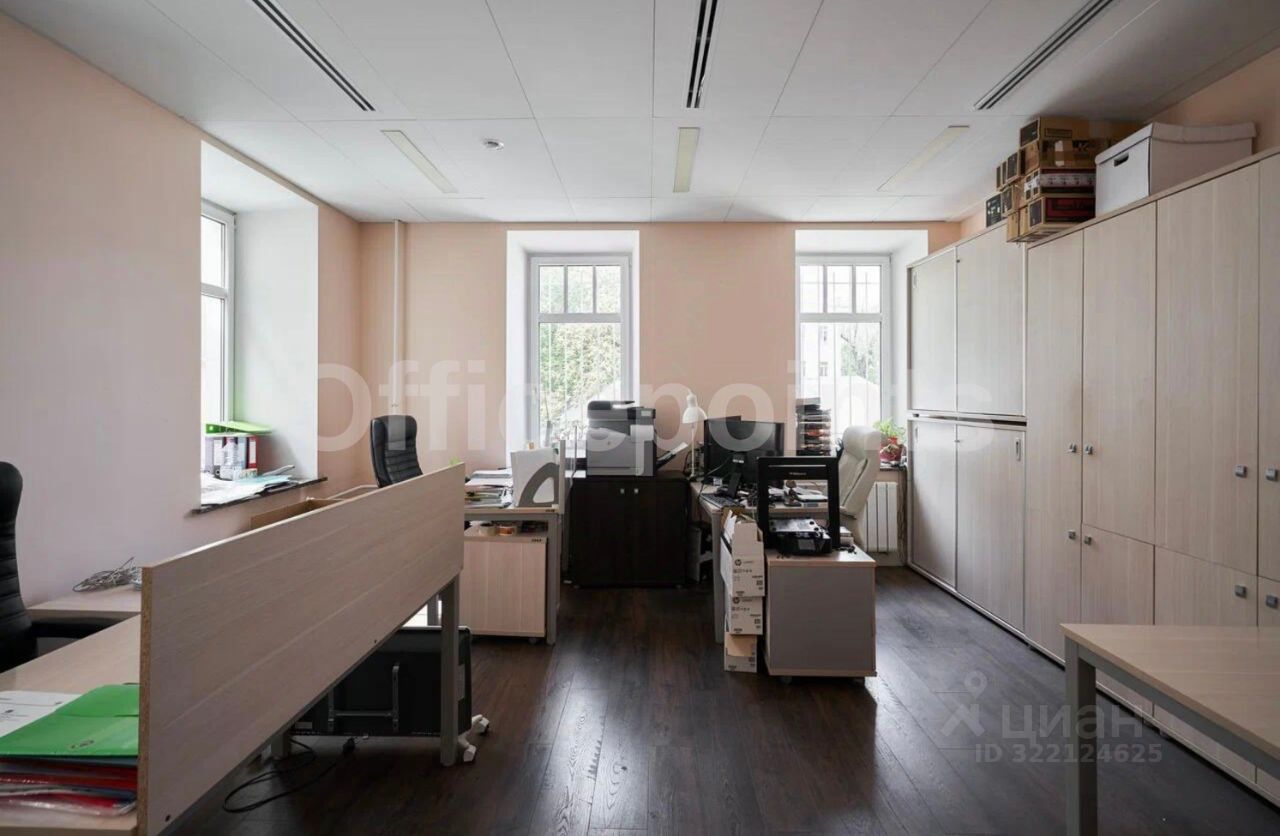 В помещении стандартная офисная отделка, кабинетная планировка (состоит из зоны ресепшн, 6 кабинетов, отдельный с/узел). Сплит-система и естественная вентиляция. В наличии наземная парковка.
