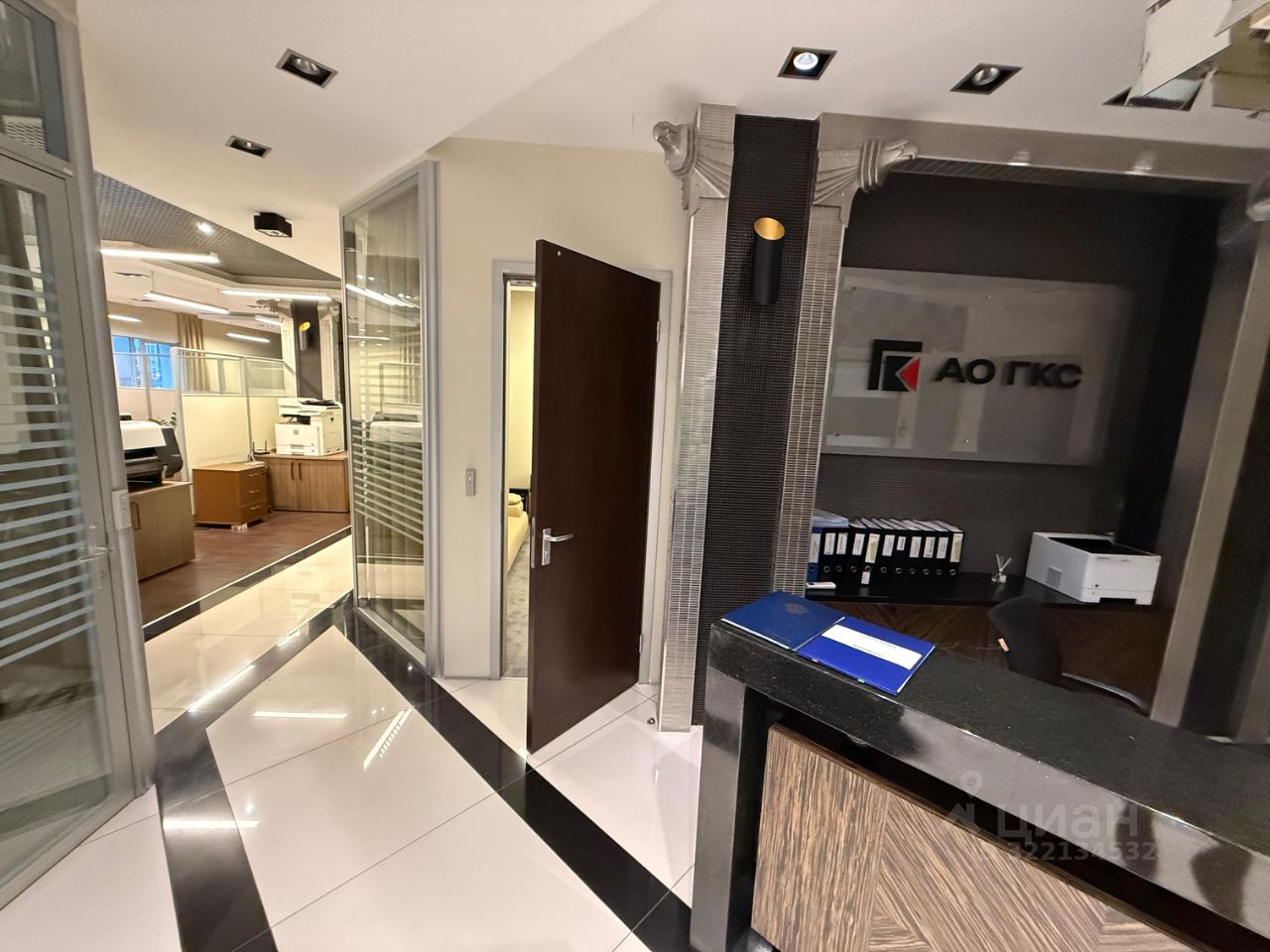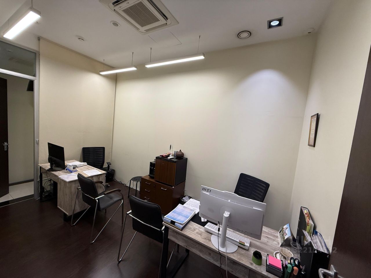 В самом офисе меется несколько переговорных комнат и отдельных кабинетов, кухоный блок,небольшое подсобное помещение,стойка ресепшен. Хороший,качественный ремонт.
