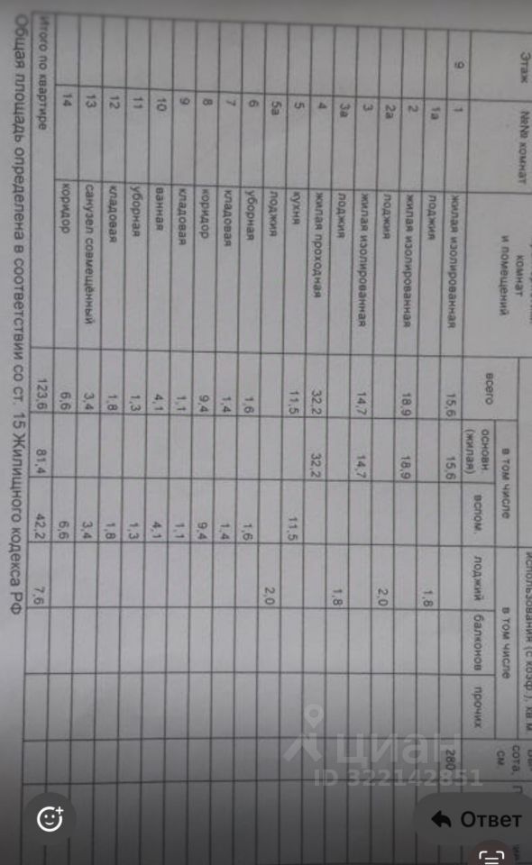 4 комнаты (3 изолированные спальни и гостиная),4 лоджии,3 с/у,3 кладовые.