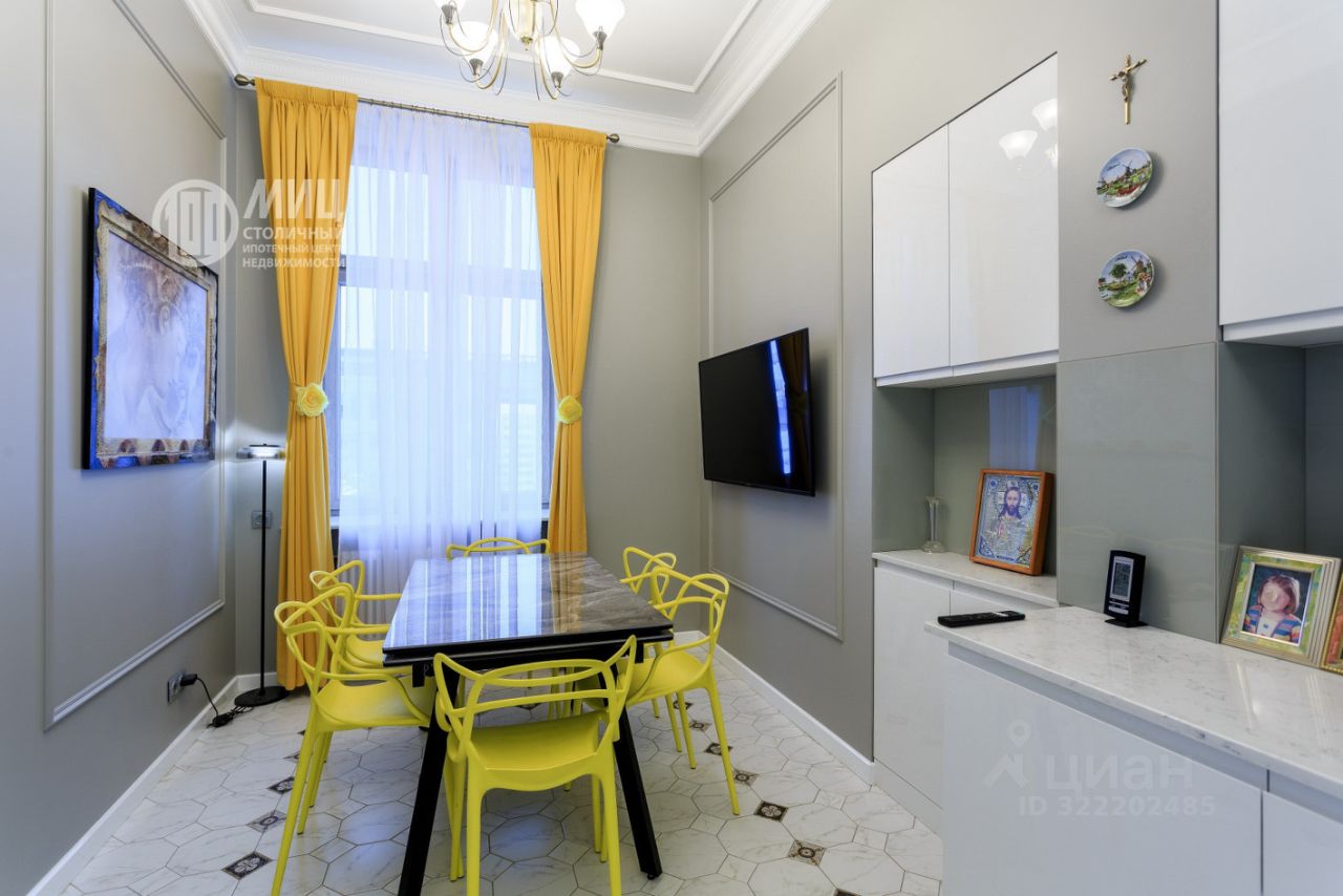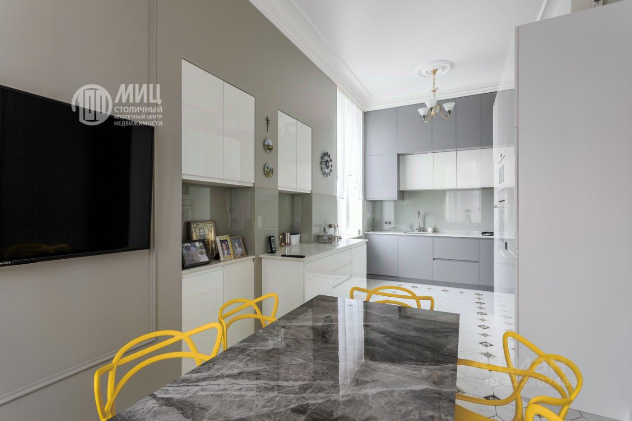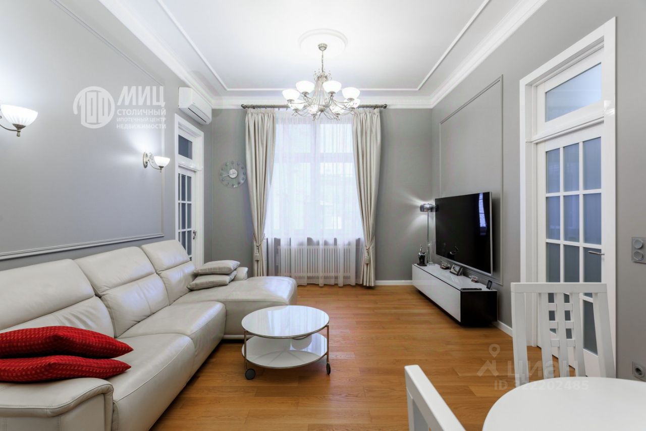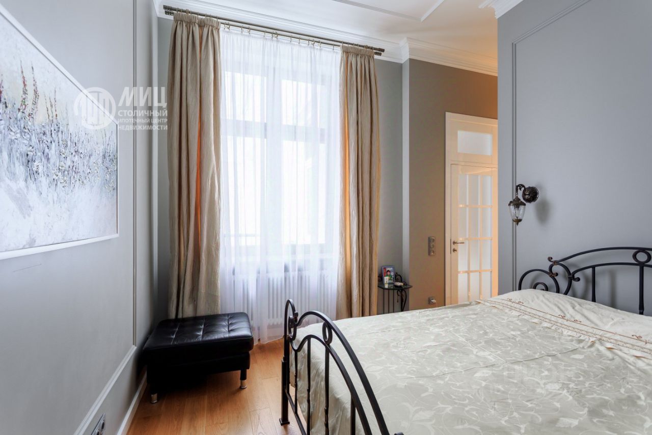 В тихом переулке центра Москвы в неоготическом архитектурном стиле доме 1912 года постройки 4-х комнатная квартира общей площадью 125 кв.метров на 6-м этаже 6-ти этажного дома с огромными окнами в тихий зеленый двор - предлагается к продаже!