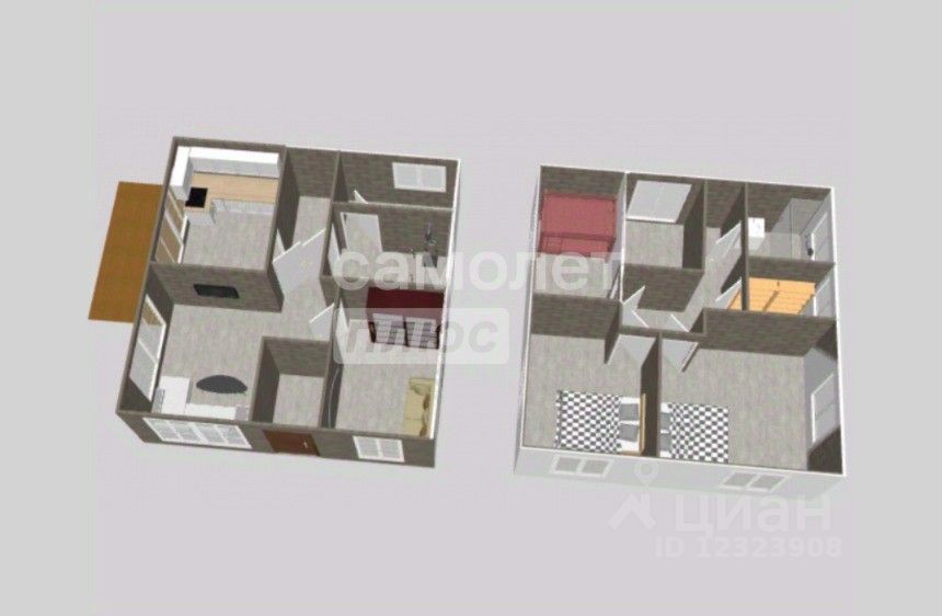 1 этаж: прихожая, комната, гостинная, кухня с выходом на террасу, совмещенный санузел, котельная, пространство под лестницей, куда проведен свет. 2 этаж: 3 спальных комнаты, совмещенный санузел, большая гардеробная.