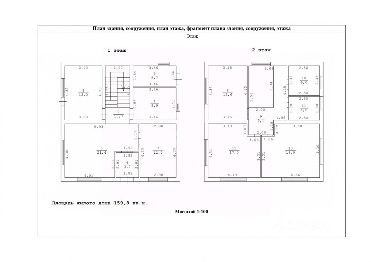 Общая площадь 159,8 м2 по полу.