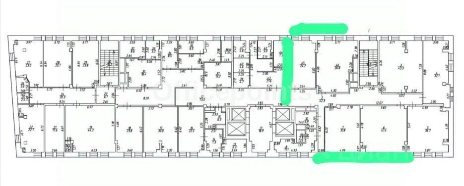 В помещении офисная отделка, смешанная планировка.