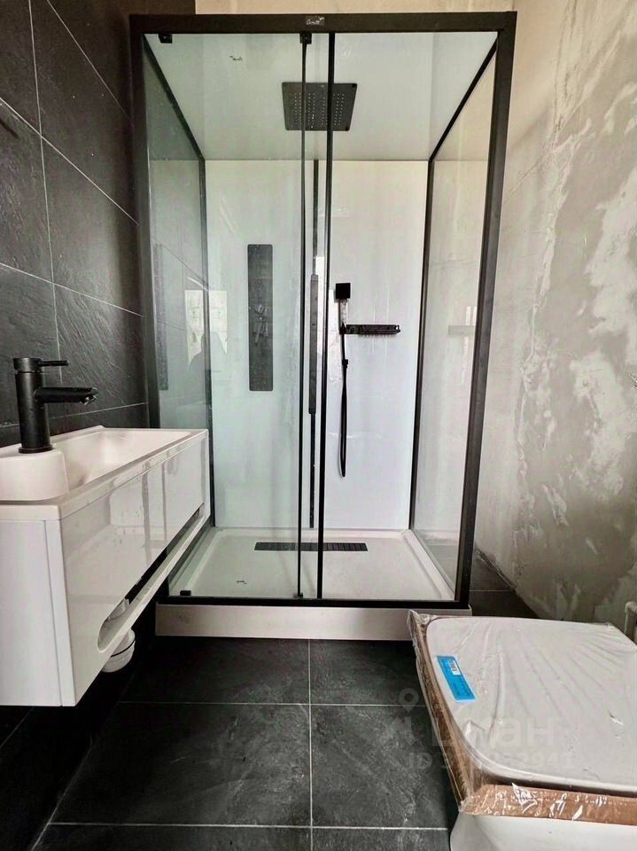 В доме две ванные комнаты — никаких очередей по утрам! Кухня просто мечта: массив, удобная, с большим окном над рабочей поверхностью, где можно провожать закаты и ничего не мешает. Здесь стоит качественная техника Bosch, так что готовить будет одно удовольствие. Проектор 4К ультракороткофокусный.