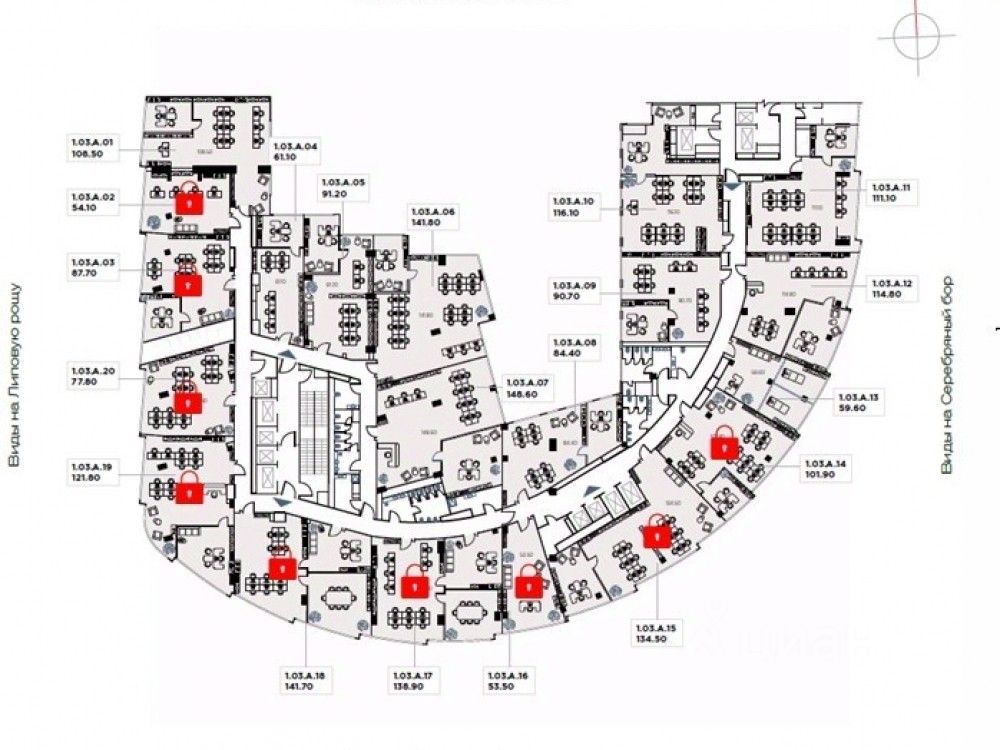 . береговой линии Москвы-реки и живописной набережной вдоль Строгинской поймы. Офис площадью 61,10 м2 расположен на 3 этаже МФК, без отделки, потолки 3,30 м.