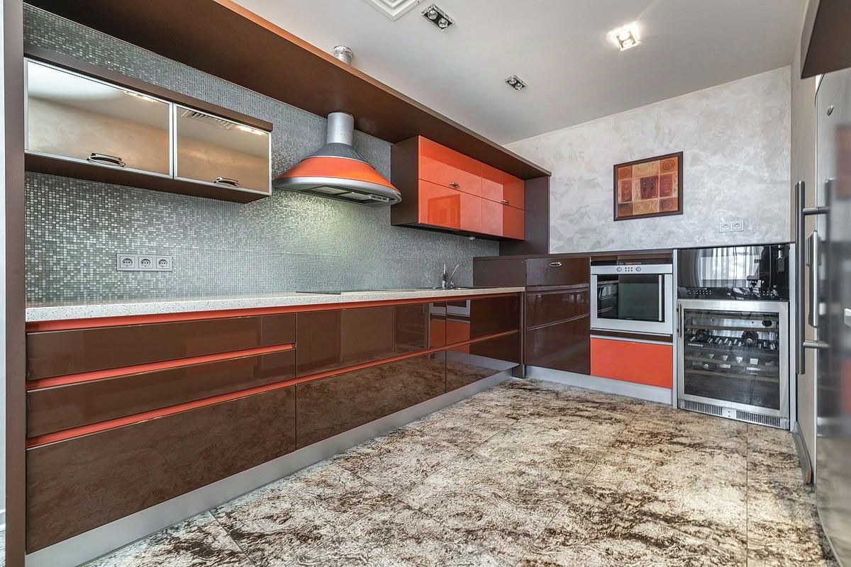 Кухня полностью оборудована всей необходимой бытовой техникой ( посудомоечная машина, винный шкаф, большой холодильник, варочная панель).