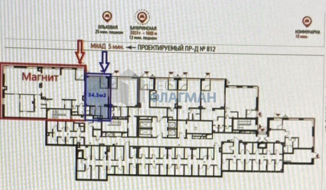 Cоседнее помeщениe - продовольственный магазин Федеральной торговой сети, федеральная аптечная сеть, парикмахерская, табак, пункты выдачи заказов и т д