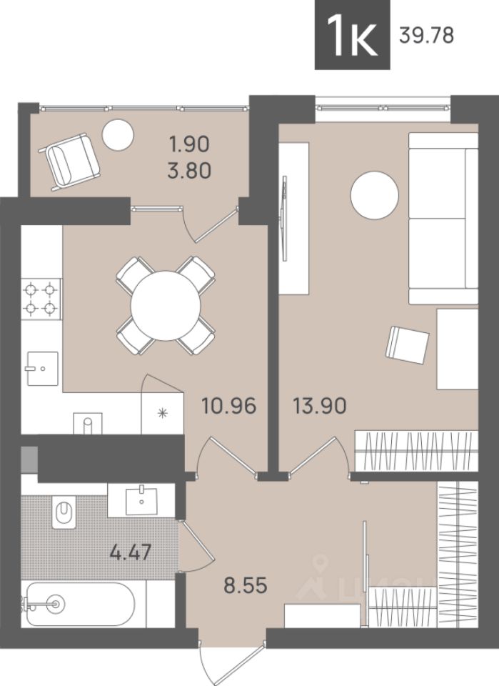 Общая площадь39,78 м2