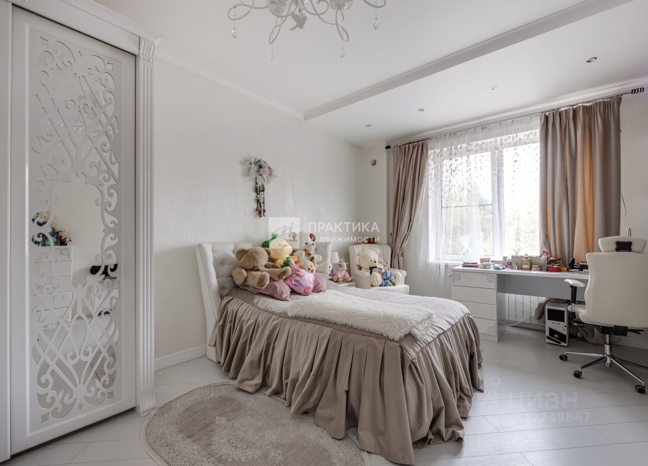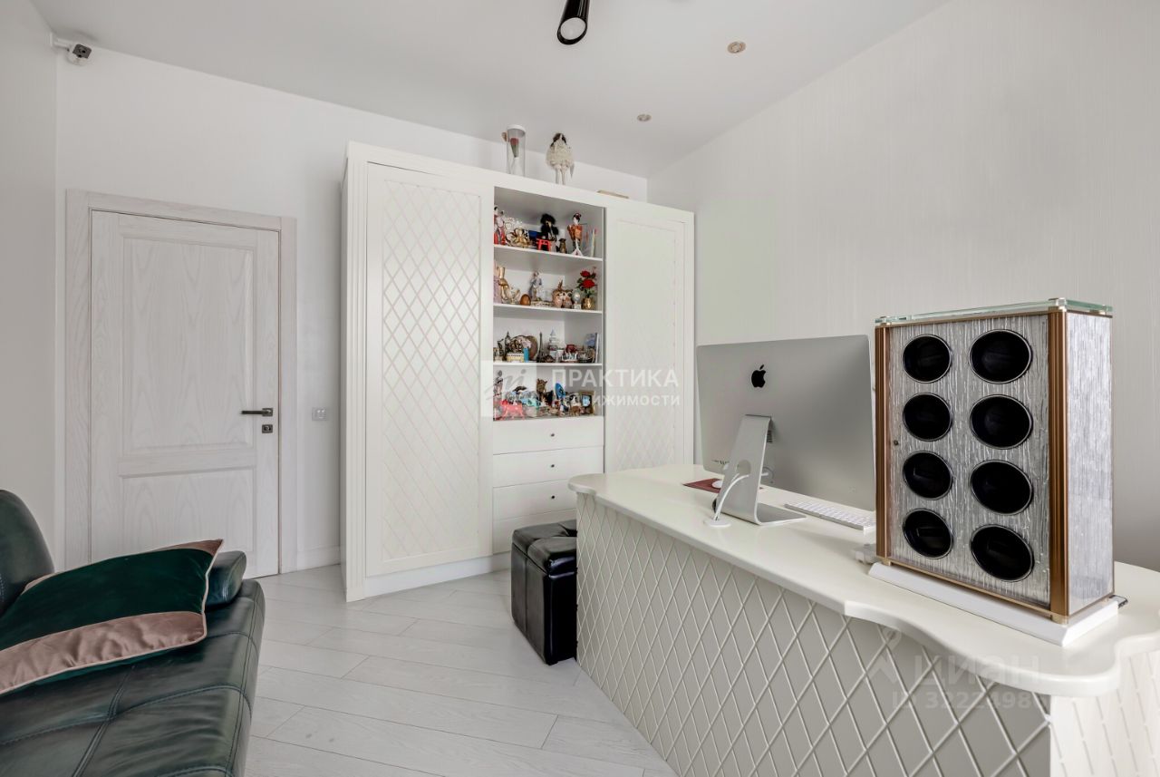 Функциональная планировка предусматривает: единое пространство, которое состоит из гостиной, столовой и кухни, вторую гостиную, 3 детские спальни и 1 мастер-спальню, гостевую комнату, кабинет, зимний сад, 3 гардеробные комнаты, 4 санузла, постирочную и кладовую. В отделке помещений использованы натуральные природные материалы. Квартира полностью меблирована и технически оснащена всем необходимым для комфортного проживания.