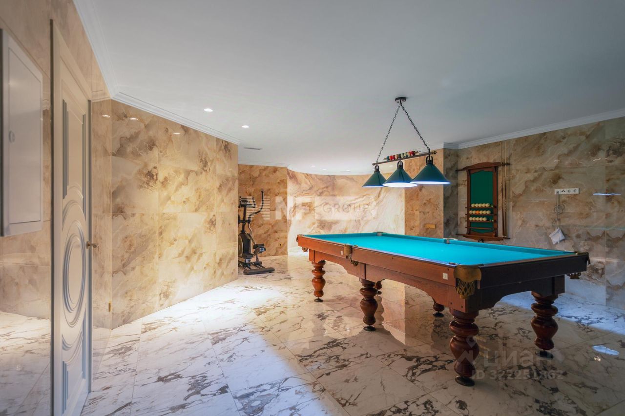 Цокольный этаж: бильярдная, постирочная, бойлерная, технические и подсобные помещения, холодильная комната, зоны хранения. 1-й этаж: прихожая, холл, кухня-столовая, гостиная. Бассейн с баней, хамамом и душевой. 2-й этаж: три спальни с отдельными санузлами, мастер-спальня с гардеробной. 3-й этаж: гостевая спальня, зал, туалет.