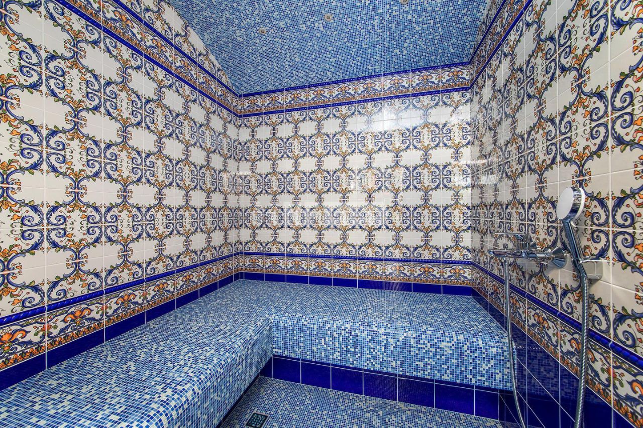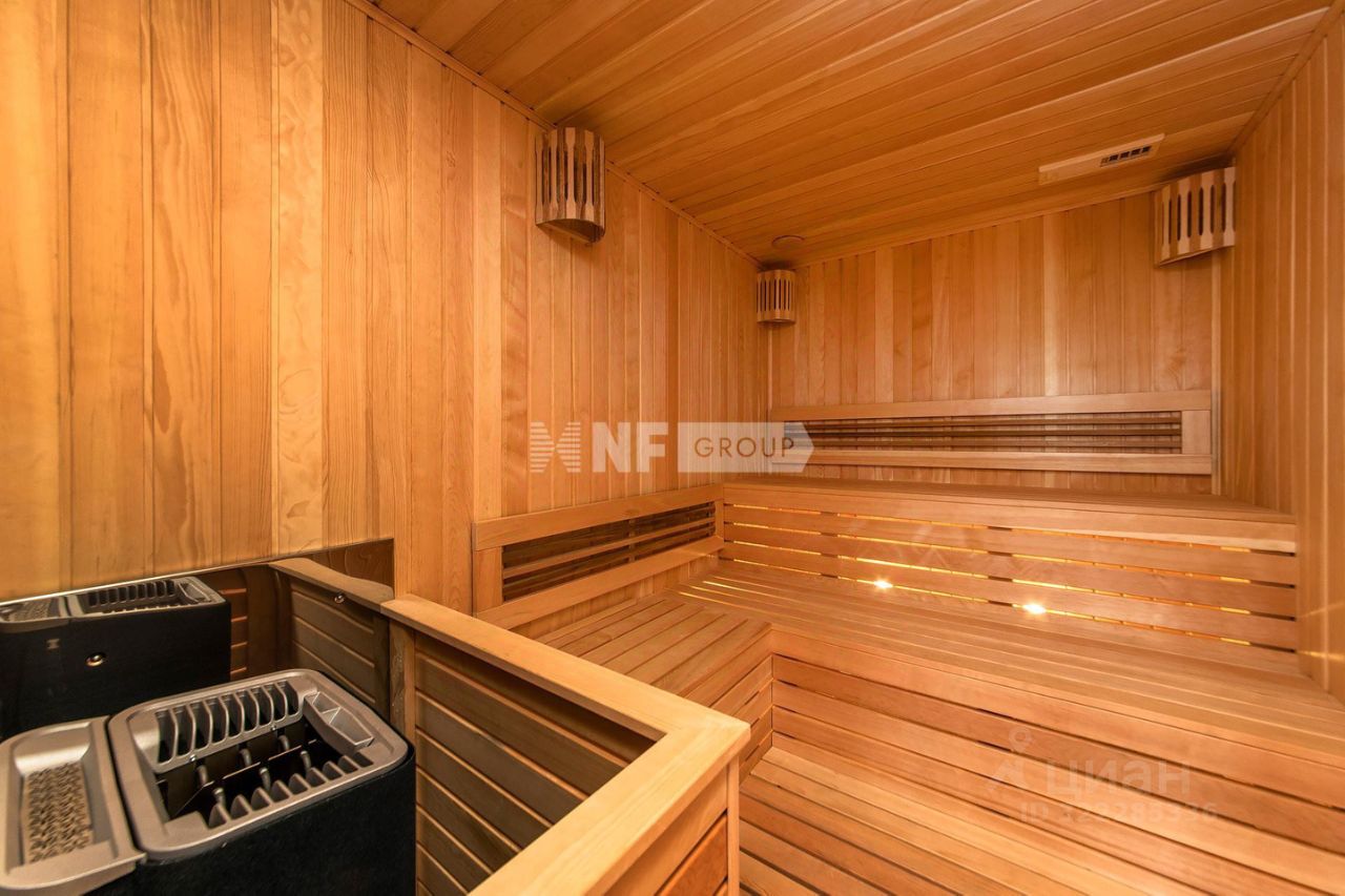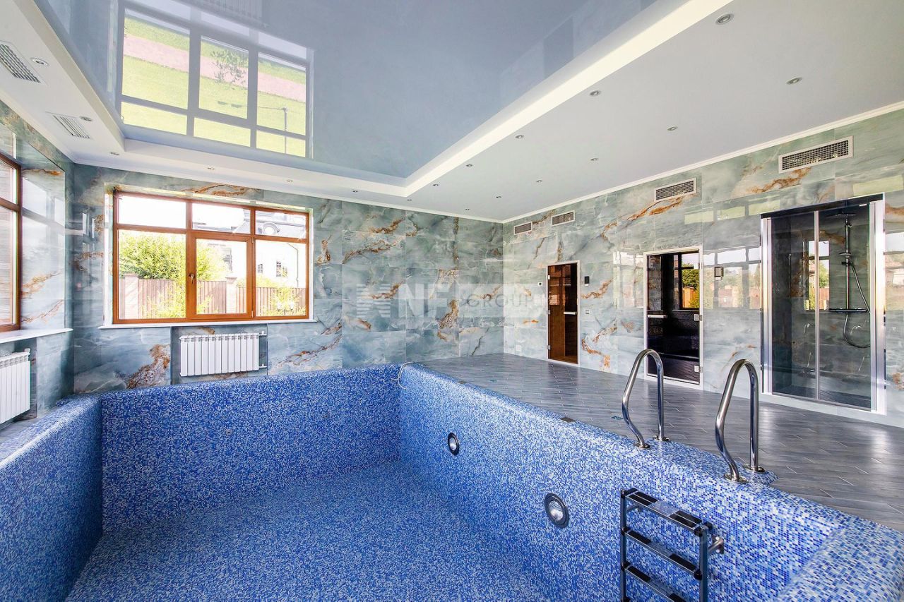 Цоколь: Винный погреб 38 кв.м и оружейная комната 6 кв.м 1-ый этаж: Крыльцо, прихожая 16,4 кв.м, гардеробная 7,3 кв.м, коридор 11,8 кв.м, гостиная 50 кв.м с камином, панорамным остеклением, вторым светом и выходом на террасу 30 кв.м, кухня-столовая 43 кв.м, гостевая спальня 19,7 кв.м с с/у 5,7 кв.м, СПА-зона с бассейном 48 кв.м с чашей 6х4 метра, глубина бассейна 1,6 метров, хамам 5,7 кв.м, сауна 6,4 кв.м, душевая, бильярдная 33 кв.м, гостевой с/у 2,7 кв.м, тех.помещения 2,1 кв.м (для оборудования бассейна), коридор 15 кв.м, котельная 19 кв.м 2-ой этаж: Галерея 12,8 кв.м, спальня 32,6 кв.м с ванной комнатой 8,2 кв.м и гардеробной 6,7 кв.м (в гардеробной есть лестница, ведущая на оборудованный чердак под хранение не сезонных вещей 25 кв.м, высота потолка 2,8 метра), спальня 32,3 кв.м с гардеробной 5,2 кв.м и с/у 5,7 кв.м, спальня 29 кв.м с гардеробной 6,4 кв.м и с/у 7,1 кв.м, спальня 36 кв.м с гардеробной 7,1 кв.м и с/у 8,2 кв.м, гостиная/спальня 27,75 кв.м с гардеробной 8,36 кв.м и балконом 7 кв.м