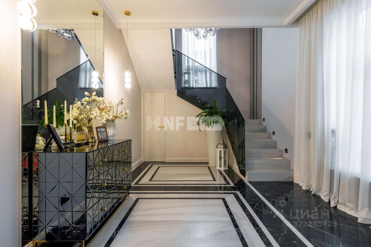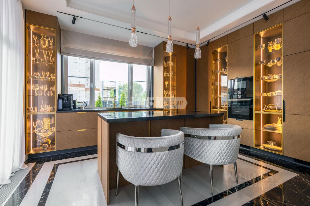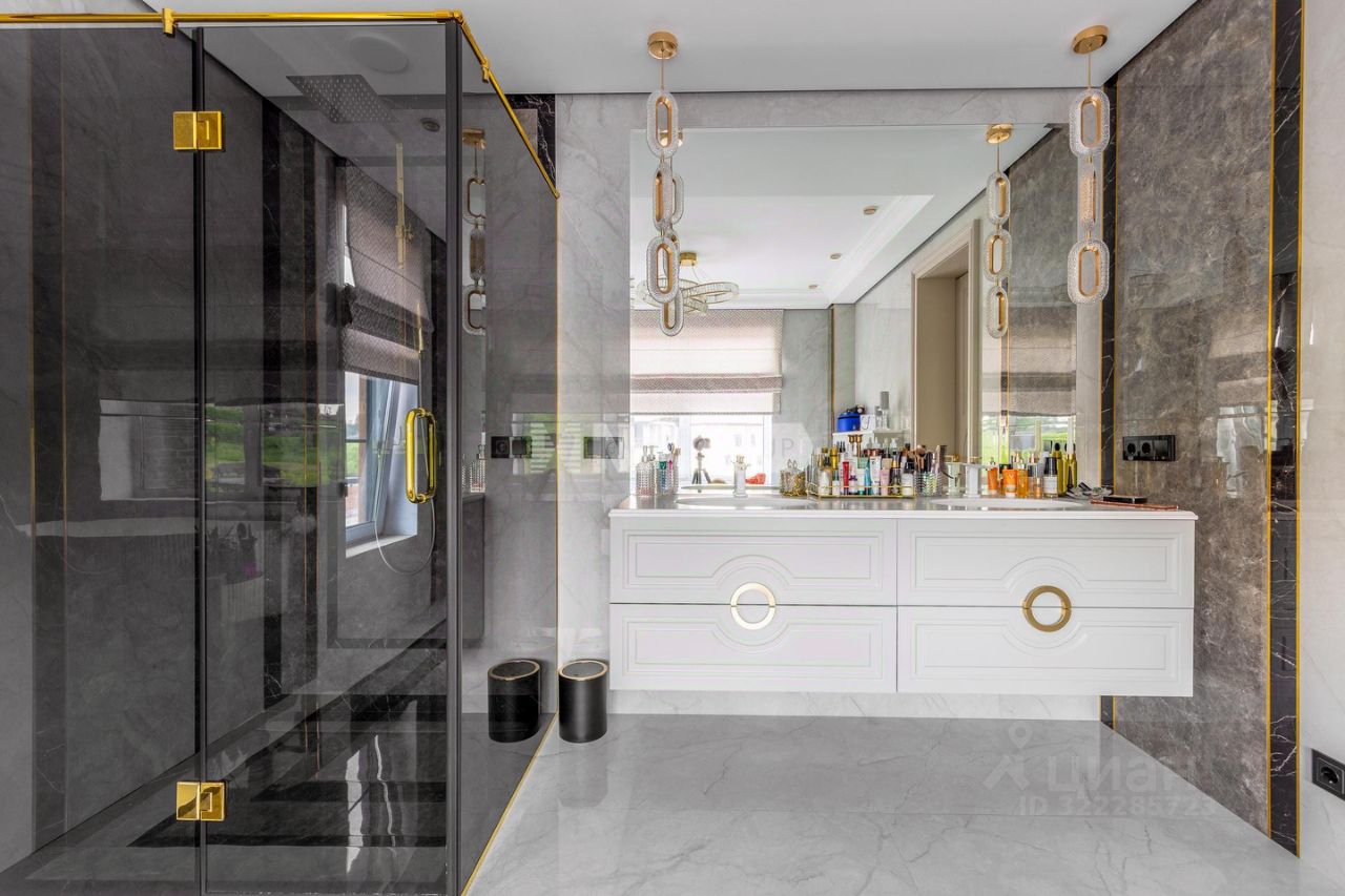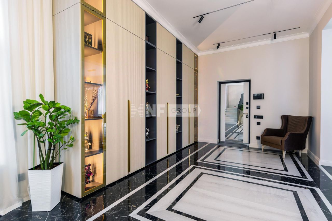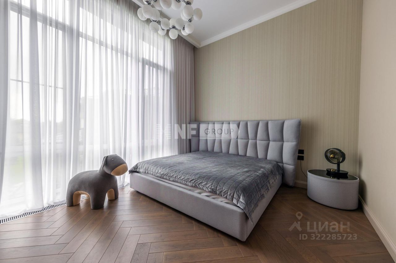 1 этаж прихожая, встроенная гардеробная система, с/у, постирочная, котельная , система очистки воды, кухня столовая с выходом на террасу, гостиная зона 2 этаж хозяйская спальня потолки 4.5 метра, со своим с/у с подогревом стен и полов, сантехника TECEspring, две спальни с панорамным остеклением, гардеробная с системой Mr.Doors, с/у.