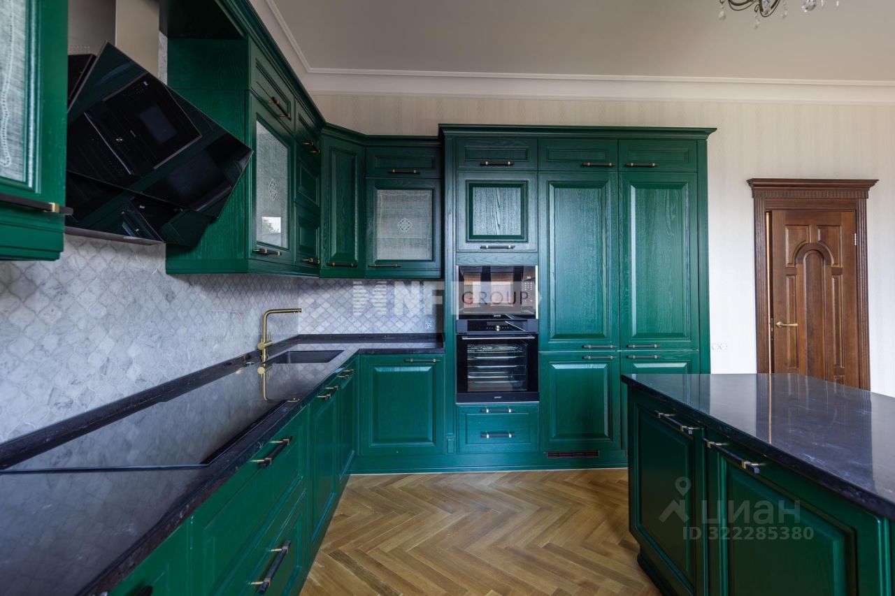 Цоколь: спортивный зал 44,5 м2, постирочная 10,8 м2. склад для хранения15,0 м2, комнаты 23,2 и 42,2 м2, 1 этаж: прихожая, зал 42,0 м2, кухня из массива со встроенной техникой и островом 44,5 м2, детская 23,5 м2, комната 12,5 м2, с/у, 2 этаж: мастер-спальня 44,5 м2 с с/у, 2 детских спальни 22,5 и 19,5 м2 с с/у и гардеробной 13,5 м2, 3 этаж: спальня 44,5 м2, служебная комната 14,5 м2, спальня 18,0 м2, с/у, кабинет 40,0 м2.
