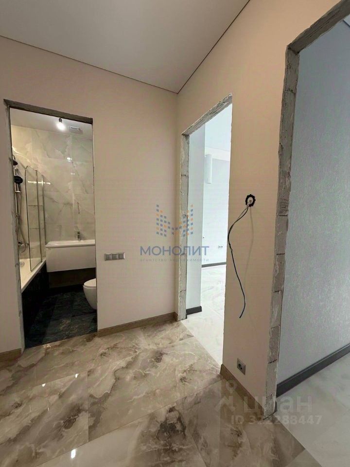 Выполнен качественный ремонт: возведены стены, залиты полы, проведена электропроводка, установлены современные радиаторы отопления фирмы RIFAR, установлен проточный водонагреватель, теплые полы по всей площади, на полу керамо-гранит, потолок натяжной, вызывная панель домофона с видеоглазком, наклеены обои под покраску, стены покрашены, плинтуса.