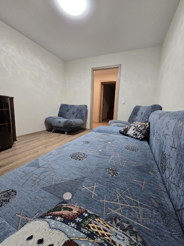 В квартире сделан косметический ремонт. Просторная кухня площадью 7.8 кв. м оборудована всей необходимой мебелью и техникой, включая холодильник и стиральную машину. В комнате также установлена мебель. Санузел раздельный, в ванной комнате есть ванна. В квартире имеется лоджия, где можно обустроить зону отдыха. Матрасы и стол докупить под жильцов.