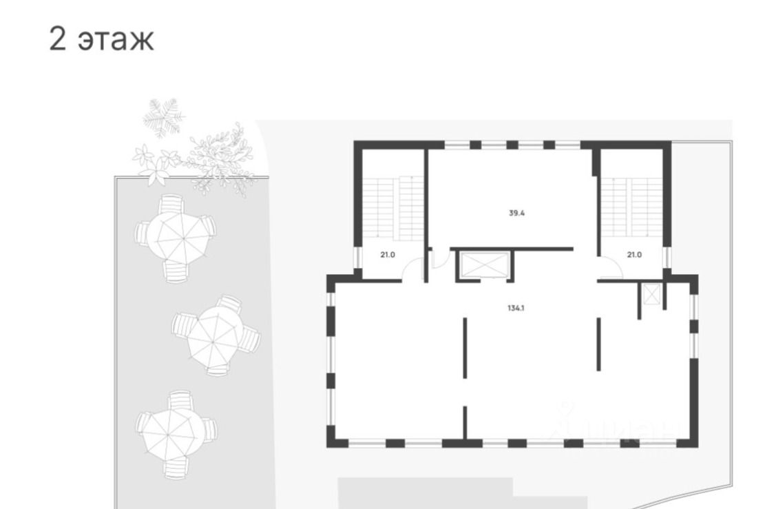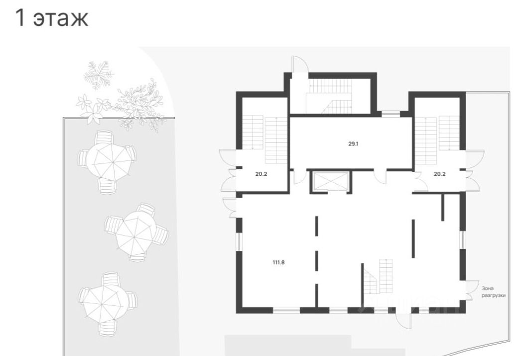 Четыре отдельных входа, открытая планировка, высокие потолки.