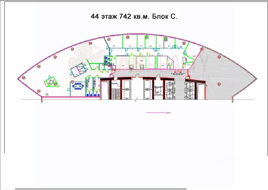 44 этаж. Офис со стильным ремонтом и своими санузлами.
