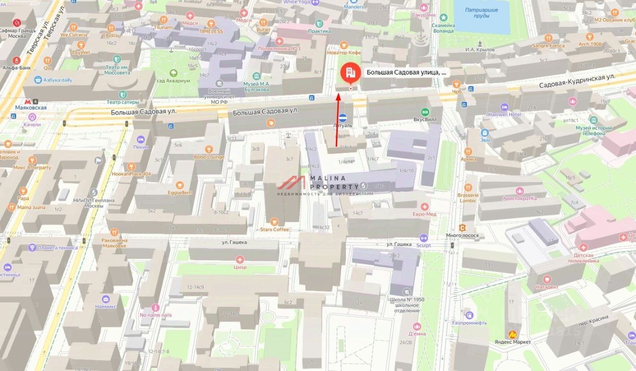 Коммерческие помещения в историческом и деловом центре Москвы, в шаговой доступности от ''Патриарших прудов''. В непосредственной близости расположены элитные ЖК ''Патриарх'', ''Клубный дом Булгаков'', ''Мастер и Маргарита'', ''Бакст'', большое количество бизнес-центров.