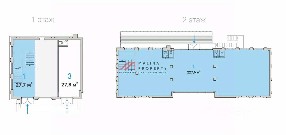 Первый этаж 26,9 м2, второй этаж 216,1, открытая планировка, отдельный вход с фасада, высота потолка 3.2 - 4,0 м, витринные окна по фасаду. Электрической мощности достаточно под любой вид деятельности. Состояние помещения под отделку. Место для размещения рекламы на фасаде.