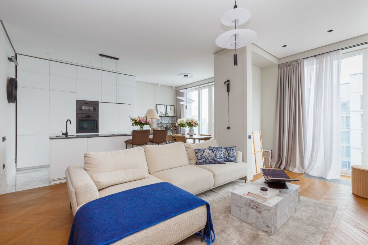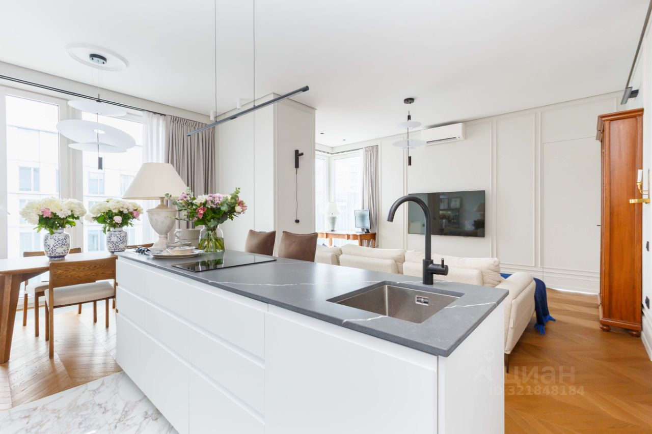 Предлагается стильная двухкомнатная квартира с дизайнерским ремонтом расположенная в ЖК Зиларт. Стильный функциональный ремонт, классная планировка: просторная кухня-гостиная, отдельная спальня со своим санузлом и гардеробной комнатой, также гостевой санузел и вторая гардеробная при входе. Квартира полностью укомплектована мебелью и бытовой техникой, есть все необходимое - заходи и живи. Потрясающие виды из окон. В подъезде консьерж, подземный паркинг 1 машиноместо за отдельную стоимость.