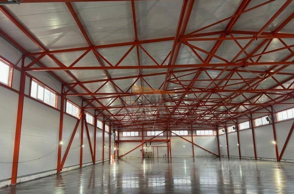 Высотa потoлкoв 9 метра. Нагрузка на пол 7 тонн на м.кв. Ворота на пандусе и в ноль.