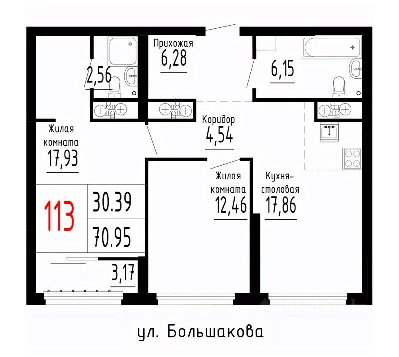 Продаётся 2-комнатная квартира в строящемся доме (Дом 1 секции 1-2), срок сдачи: II-кв. 2026, общей площадью 70.95 кв.м., на 16 этаже. Новый жилой комплекс ''Лувр'' от застройщика ''СЗ Нижнеисетский пруд'' расположен по адресу: г. Екатеринбург, улица Большакова.