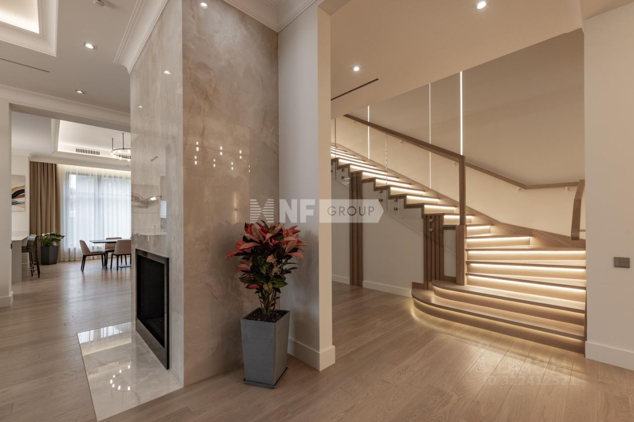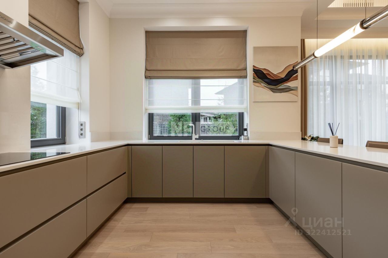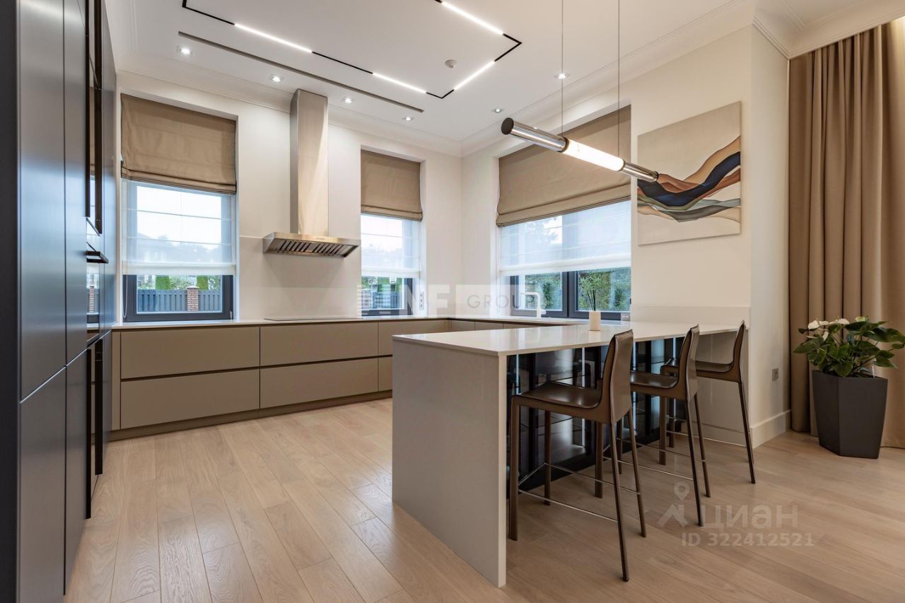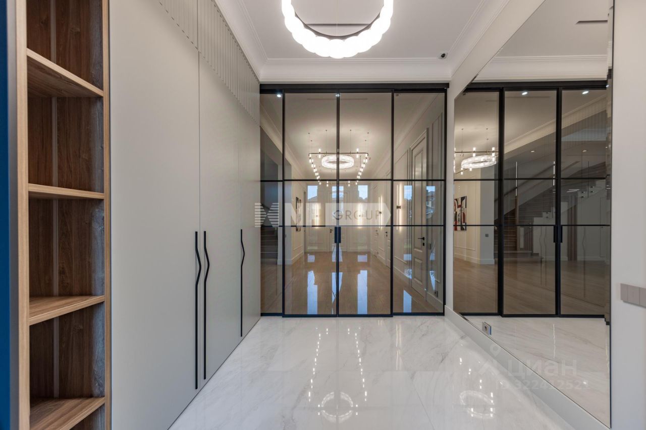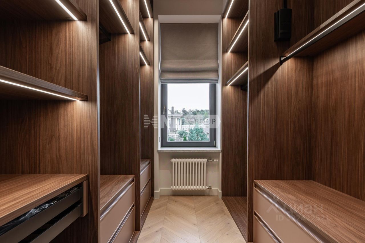 1-й этаж прихожая, гардеробная, постирочная, кладовая, игровая комната, спальня первого этажа, гостевой с/у, немецкая кухня с встроенной техникой Kuppersbusch, с вытяжкой Marte Pro c вентиляцией на крыше, два холодильника Liebherr, столовая зона с выходом на крытую террасу, гостиная с камином, высота потолка 3,8м, пол - массив дуба, теплый пол в зоне плитки. 2-й этаж хозяйский блок с большой гардеробной и с\у, спальный блок с двумя спальнями, с 2 гардеробными и с\у, спальня с с\у, спортзал/игровая, зона библиотеки, паркет на полу, высота потолка 3,1м. Мансардный этаж - 245кв. м с выведенными коммуникациями, высота потолка 2,5 м, лестница массив дуба.