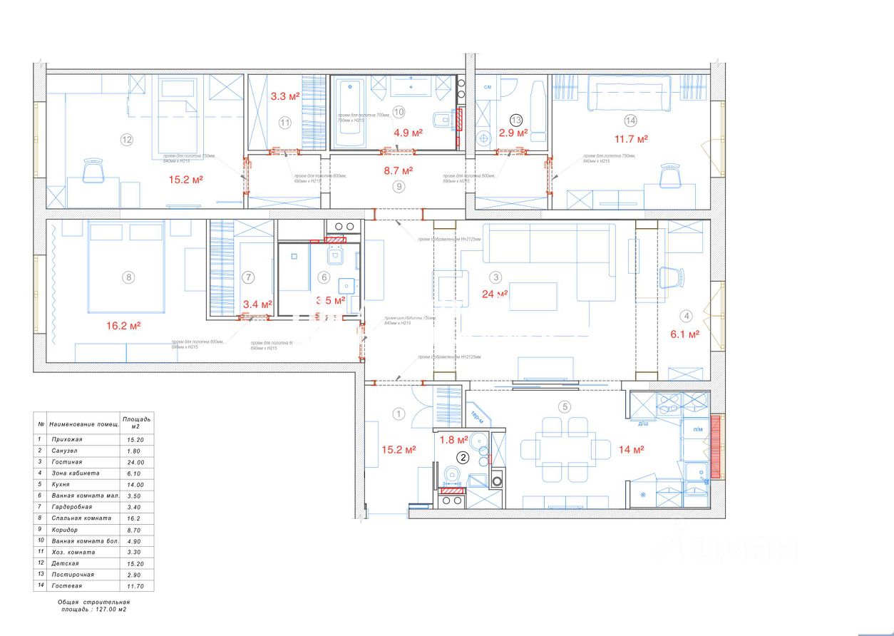 ПРО КВАРТИРУ: — УНИКАЛЬНАЯ планировка с окнами на ДВЕ СТОРОНЫ и МАСТЕР-СПАЛЬНЕЙ с собственной гардеробной и санузлом! — Просторная гостиная (24 м²) в современном стиле лофт с декоративной стеной из натурального дерева, зоной для ТВ, встроенным освещением. В проходе между кухней и гостиной установлены направляющие для дверей купе (можно зонировать пространство) — Отдельная кухня (14 м²) с качественным гарнитуром от фабрики ''Стильные кухни'', современной техникой и зоной для обеденного стола. — Мастер-спальня (16,2 м²) с выходом в собственную гардеробную (3,4 м²) и приватный санузел — идеальное решение для комфортной жизни. — Детская комната (11,7 м²) с ярким дизайном, встроенной мебелью и выходом на небольшой балкон. — Дополнительная комната (15,2 м²) в чистовой отделке - все стены оштукатурены и подведены необходимые коммуникации для установки кондиционера — ТРИ санузла: гостевой (1,8 м²) с оригинальной плиткой, большой санузел (4,9 м²) с ванной и декоративной отделкой, смесителями Grohe и Hansgrohe, мебелью Kueco (Германия), санузел при мастер-спальне (3,5 м²) в чистовой отделке. — Постирочная (2,9 м²) со всеми коммуникациями и местом для бытовой техники. — Просторная прихожая (15,2 м²) с эффектным декором из натурального дерева и встроенным шкафом для верхней одежды.