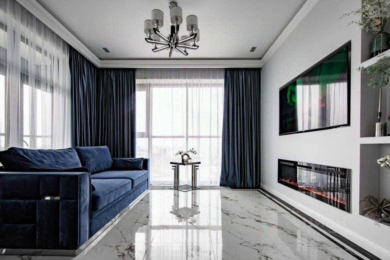 Панорамные окна в пол, из которых открываются роскошные виды на городской простор. В каждой комнате несколько сценариев освещения, которые можно включать по своему усмотрению. Бытовая техника ВOSCH и Weissgauff. Электро-камин в зоне отдыха создает особую атмосферу по вечерам.