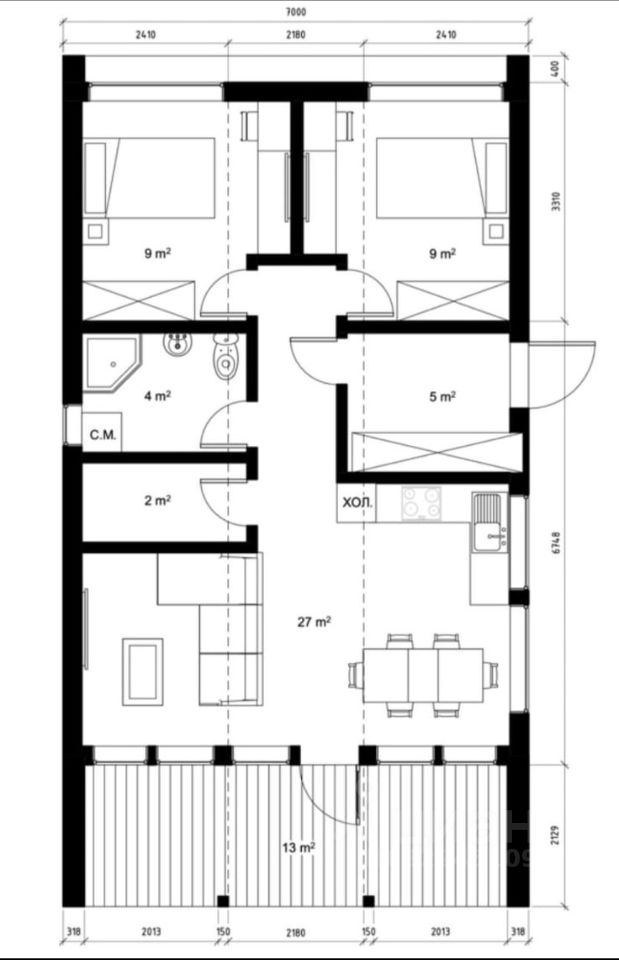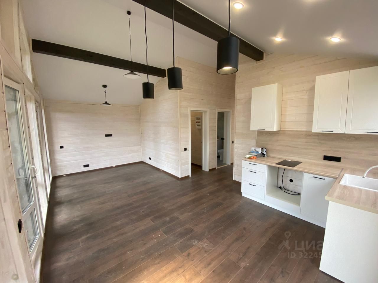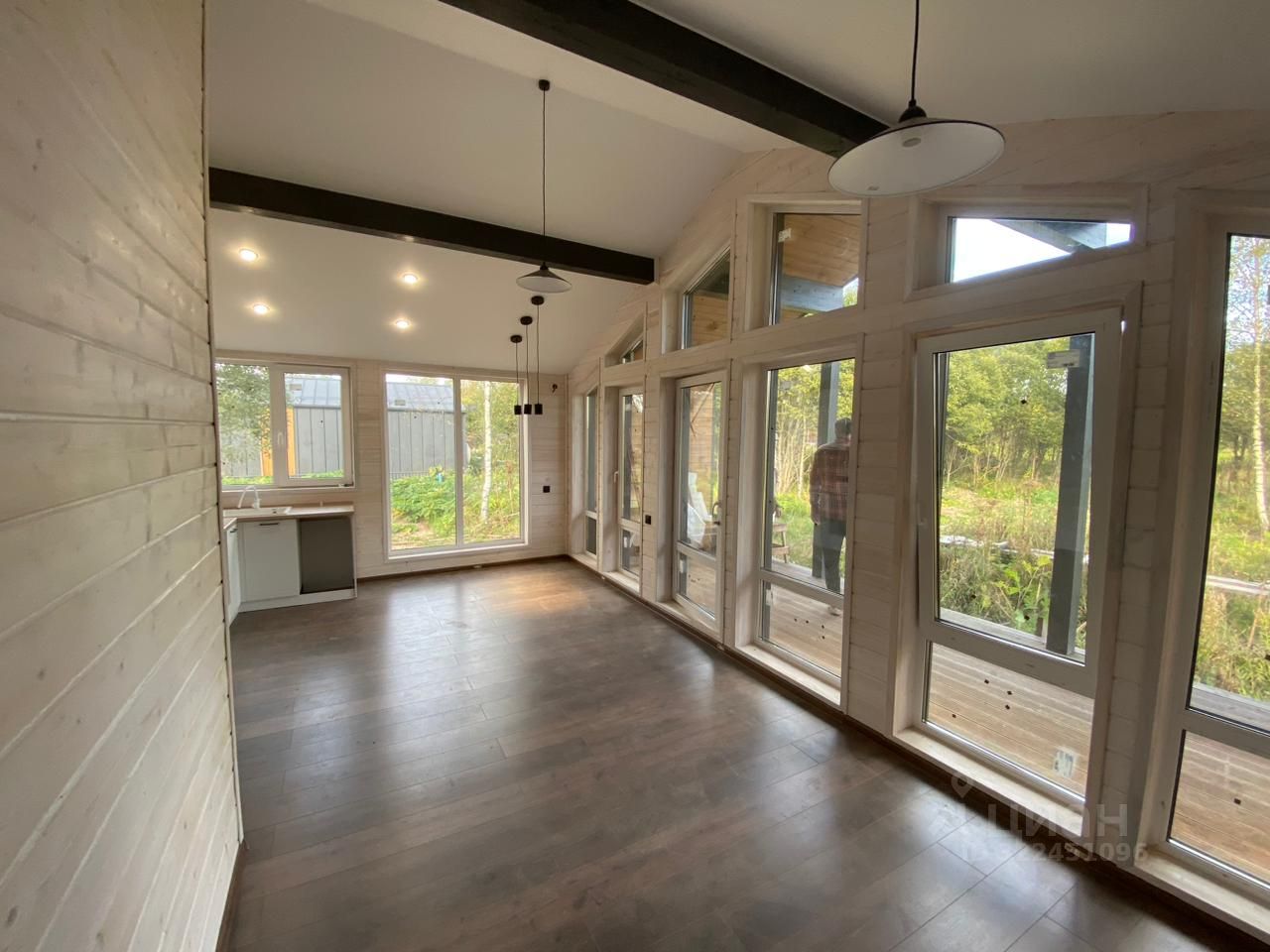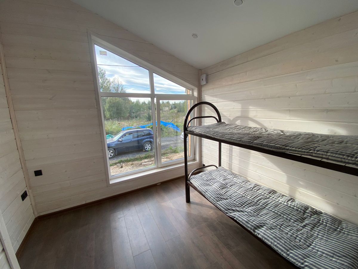 Новый барнхаус с участком 13 сот. со всеми коммуникациями в деревне Телятьево, квартал 0090321-2 (КП Протва Парк), дом 132, ждет своего нового хозяина! Локация: Уютный посёлок на берегу р.Протва в 99 км от МКАД по Минскому шоссе. Время в пути от г.Москва на автомобиле или электричке 1,5-2 часа. До г.Можайск и г.Верея 20 км. Площадь посёлка 11 Га, всего 134 домовладения. КП Протва Парк, молодой, активно развивающийся посёлок со своей концепцией. Территория закрытая, имеется КПП со шлагбаумом, дороги отсыпаны асфальтной крошкой. Строится спортивная и детская площадки. Магазин в 5 км. от посёлка. Характеристики дома: Общая площадь 91 кв.м. из них: 77,4 кв.м. площадь дома + веранда 13 кв.м., одноэтажный, полностью из дерева по новейшим технологиям с использованием современных материалов обеспечивающих тепло в доме в морозы и прохладу в жаркие летние дни. Высота потолков более 3 метров, что обеспечивает замечательный воздухообмен в помещении и создаёт ощущение пространства. Фундамент - ЖБИ сваи, кровля - клик фальц 0,5, водосточная система и снегозадержатели. Полы террасы и крыльца - террасная доска из лиственницы. Потолки натяжные со встроенными светильниками. Кадастровый номер 50:18:0090321:1036 Планировка: - 2 спальни по 9 кв.м.с панорамными окнами, - просторная кухня - гостиная с панорамными окнами и выходом на веранду. Установлен кухонный гарнитур, варочная панель и раковина со смесителем, - совмещённый санузел (новая душевая кабина с современной душевой системой, раковина, настенное зеркало с подсветкой, унитаз), - коридор, прихожая и бойлерная, - открытая терраса с уличным освещением и выходом на участок к мангальной зоне. Бонус: новый кухонный гарнитур входит в стоимость! Коммуникации: - Электричество 15 кВ т, - Водоснабжение - собственная скважина, горячее водоснабжение посредствам бойлера (80 литров), - Канализация - септик, - Отопление - инфракрасный тёплый пол с регуляторами. Характеристики земельного участка: Общая площадь 13 сот. Земли сельскохозяйственного назначения для дачного строительства. Правильной формы, ровный, высокий. На участке растут несколько молодых деревьев. Кадастровый номер 50:18:0090321:400 - Рядом с посёлком расположено Экоранчо, место, где Вы можете отдохнуть от городской суеты, поесть фермерских продуктов (куриные и перепелиные яйца, домашние сыры и мясо). На территории ранчо есть собственная конюшня, можно покататься на лошадях и познакомиться с местным верблюдом. А так же Вы посетить ферму. - В шаговой доступности находится река Протва. - в 20 км. Находится Занинское водохранилище. На берегу водохранилища расположен эко-отель Хоббитлэнд. Здесь можно рыбачить, кататься на лодках, наблюдать за природой или устраивать фотосессии в хоббитском стиле. - в 36 км от посёлка находится Государственный Бородинский военно-исторический музей-заповедник. Посетить его будет очень интересно любителям истории и детям. Ежегодно, в конце мая и начале сентября, проводится реконструкция Бородинского сражения.