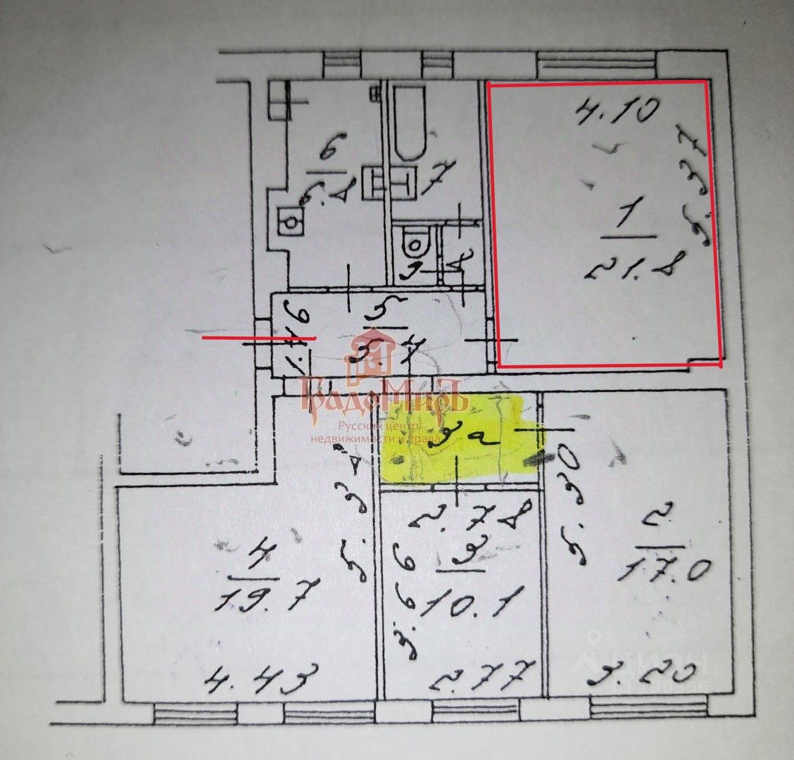Арт. 118581426 Продаётся комната 21.8 м2, общая площадь занимаемого помещения 28.89 м2 в 4-к квартире площадью 90.9 м2 на 3-м этаже в Архангельском пер. ЦАО м.Чистые Пруды! НЕ ДОЛЯ! Комната со своим Кадастровым Номером!