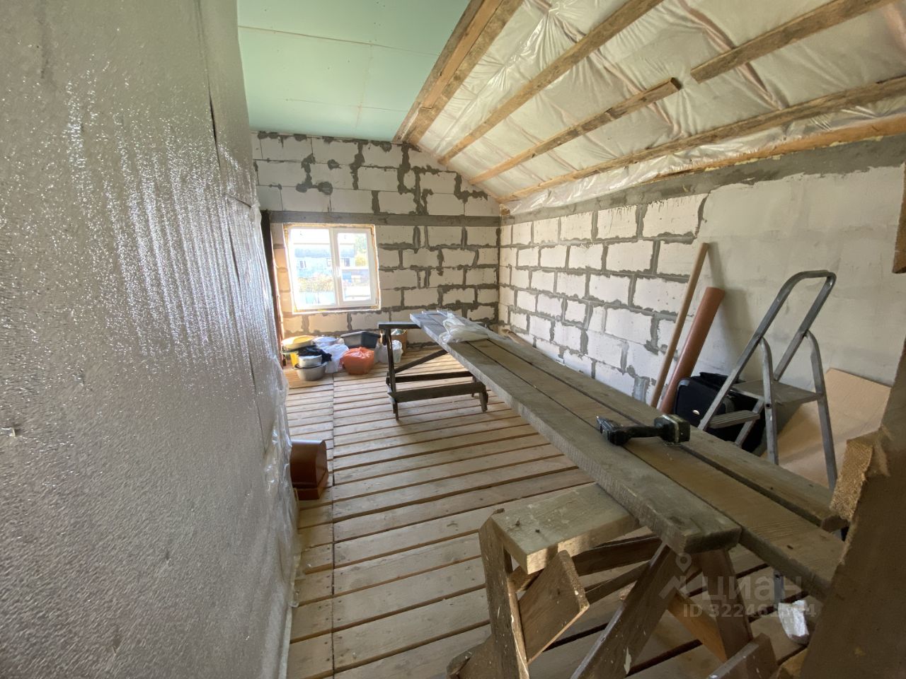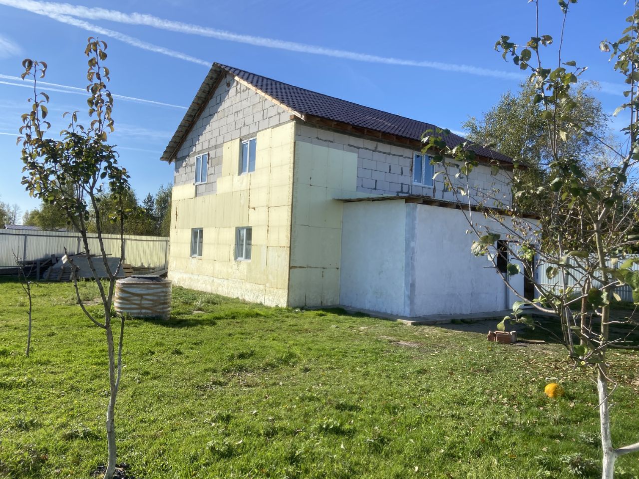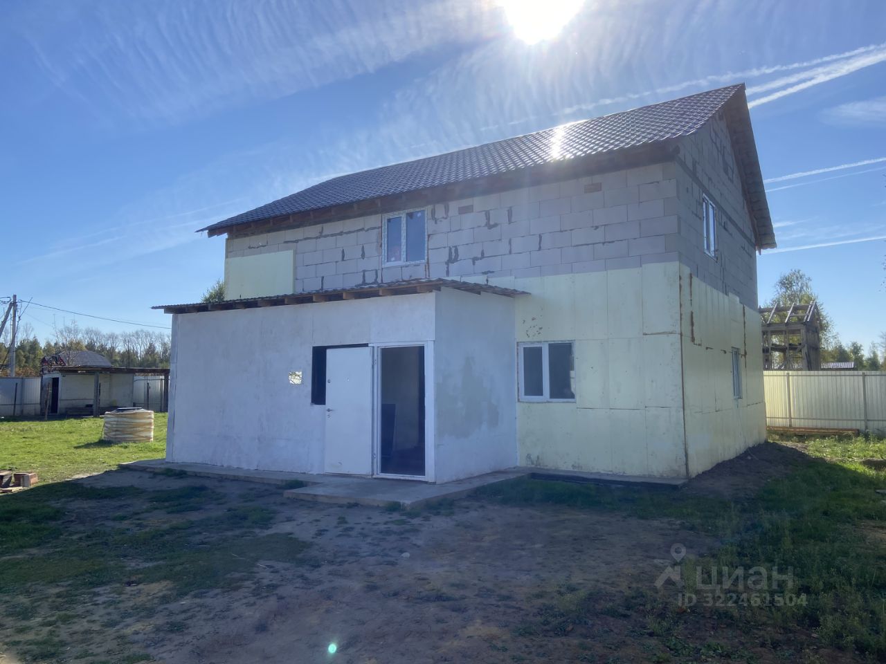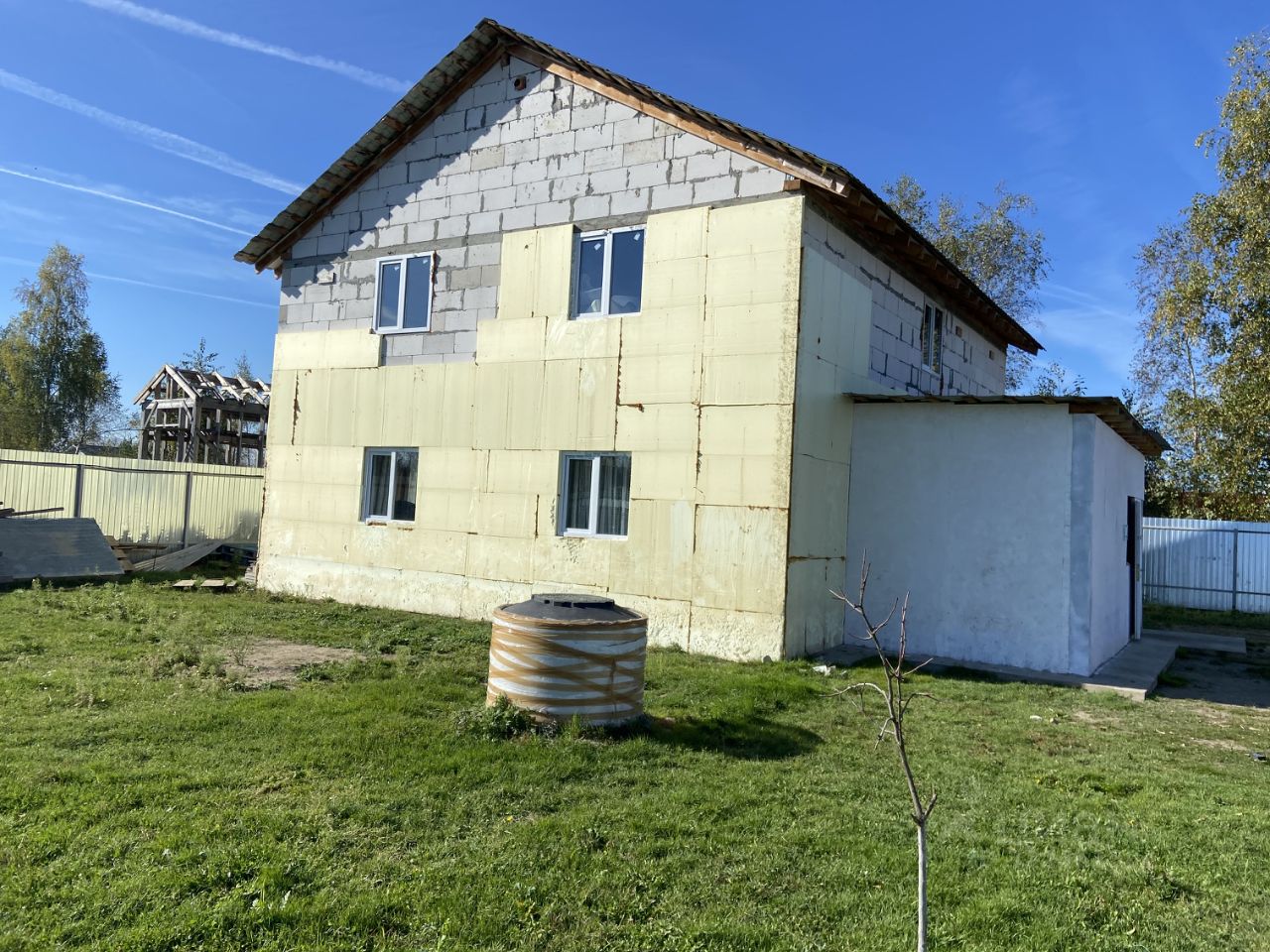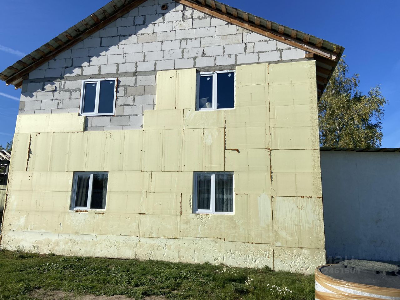 Фундамент ленточный 1,2м. в земле, стены газоблок + утеплитель, перекрытия деревянные 150 на 200, Свет 15кВТ, колодец 10 колец - вода хорошего качества, септик переливные кольца, котел на 150л. Крыша металлочерепица.