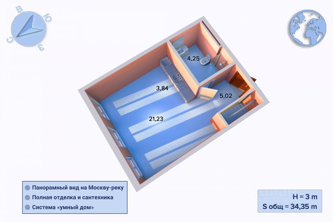 Продаётся студия с отделкой уровня CLEAN и подключенной системой ''умный дом'' в современном жилом комплексе INSIDER. Из трёх панорамных окон открывается вид на Москву-реку — редкая и ценная особенность объекта. Квартира подойдёт тем, кто ищет готовое решение без необходимости делать ремонт: всё уже реализовано по проекту, можно сразу заезжать. Прекрасный вариант как для личного проживания, так и для инвестиций — особенно с учётом привлекательной цены на видовую квартиру, которая ниже, чем у застройщика.