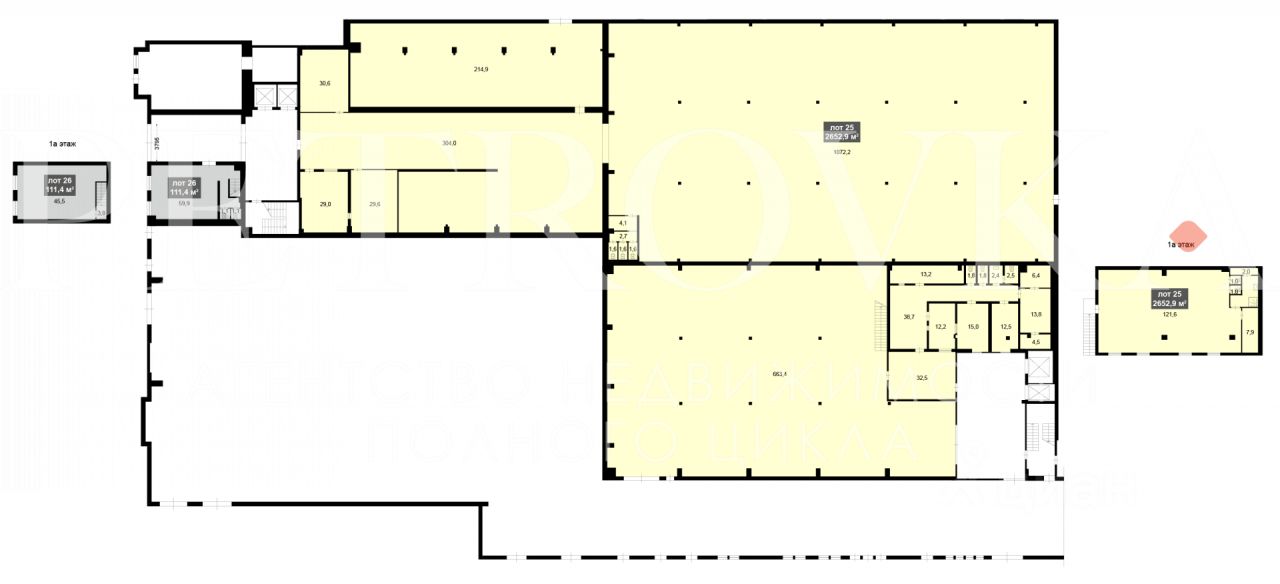 Есть возможность раздела помещения 2710,9 м2 на два меньшей площади (помещение 1 и помещение 2). Земельный участок 24115 м2 в аренде на 25 лет до 2030 года с последующей пролонгацией.