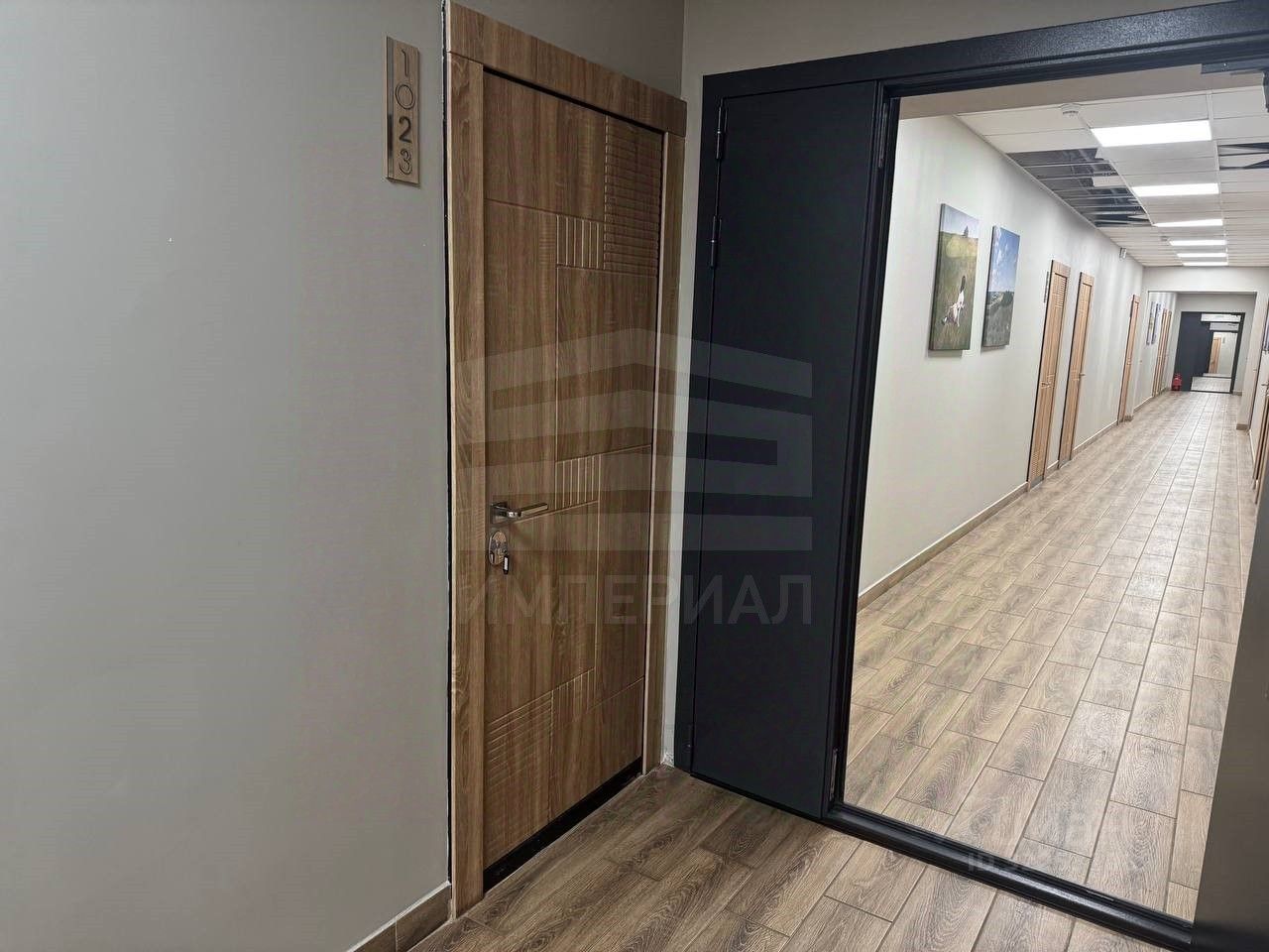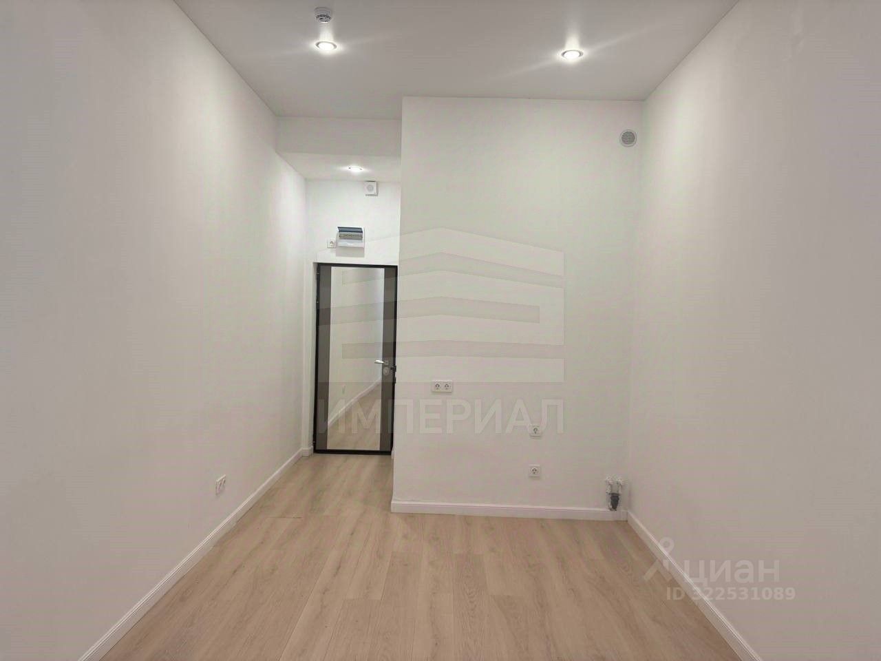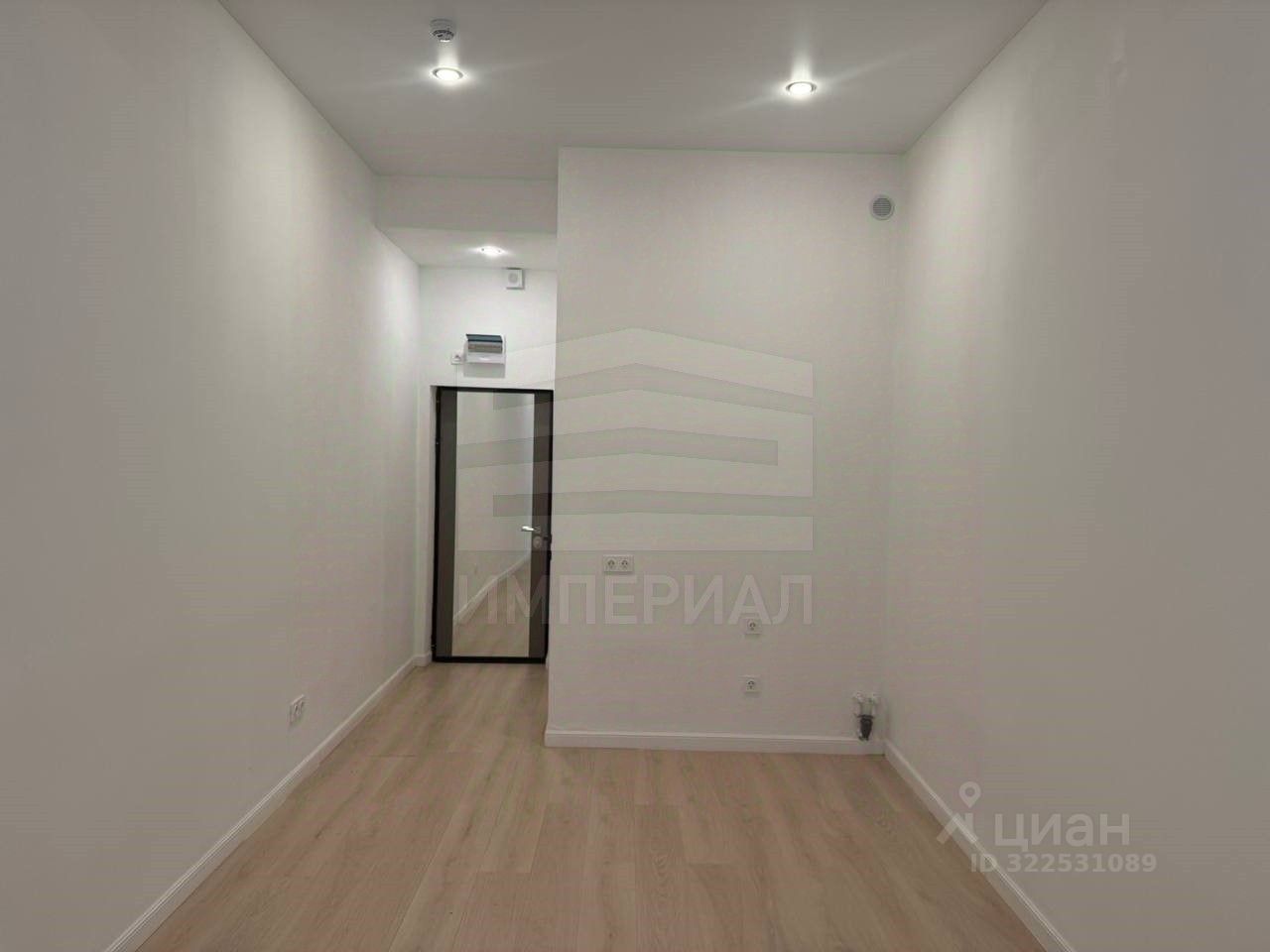 На стенах поклеены обои под покраску, на полу постелен ламинат с плинтусами и откосами. Есть вытяжная вентиляция в санузле и на кухне, выходы хв/гв, место под раковину на кухне. Кроме того, в помещениях уже есть выключатели освещения, розетки для бытовой техники и роутера, а также сделаны закладные для оптоволокна для интернета.