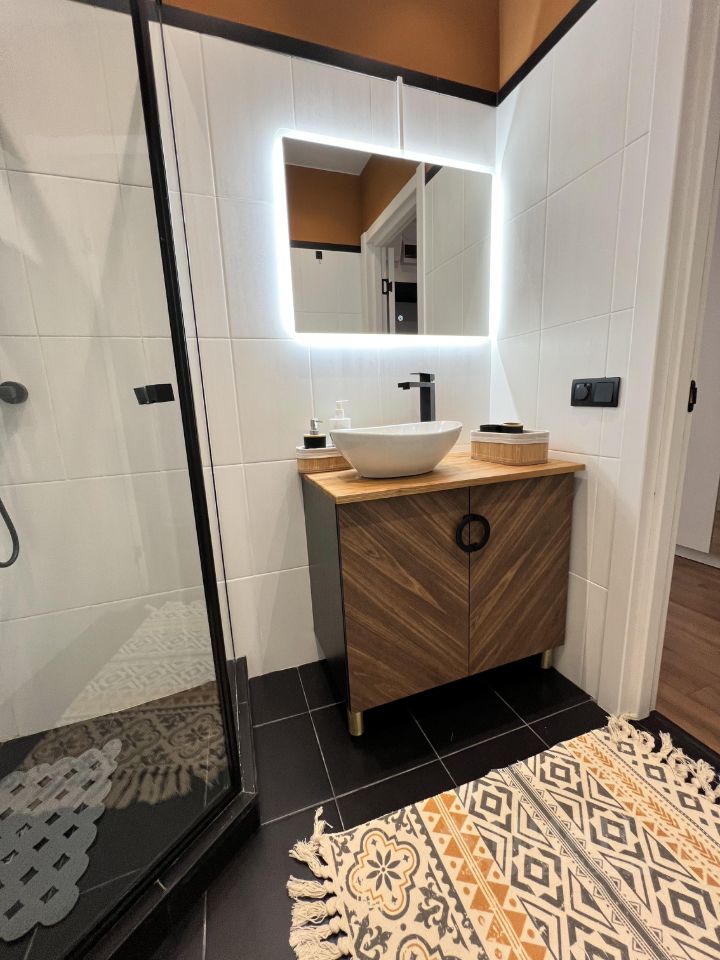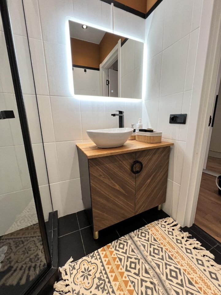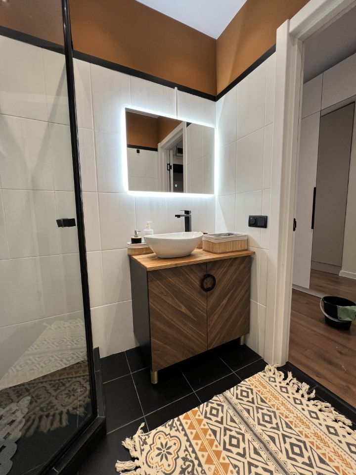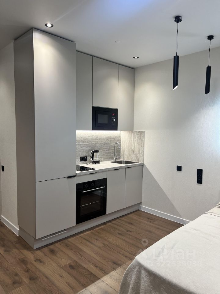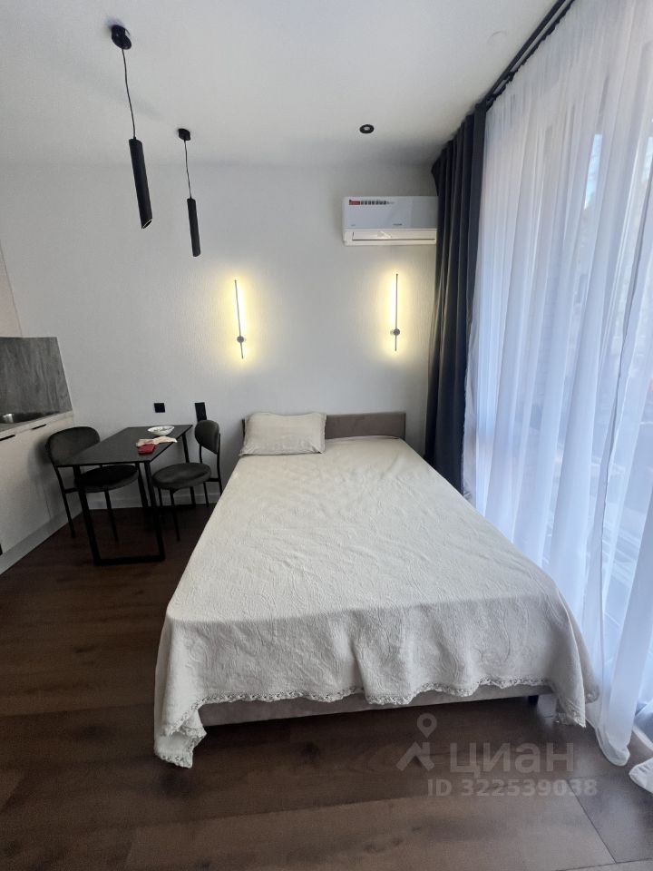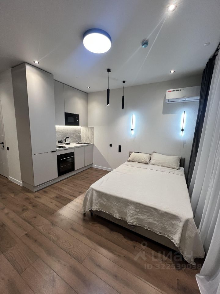 Апартаменты оформлены в стиле современного дизайна, что создает уютную и функциональную атмосферу. Просторная жилая зона в 19 кв. м позволяет удобно разместить мебель и бытовую технику. Кухня площадью 3 кв. м оборудована всем необходимым для комфортного приготовления пищи. В апартаментах также есть совмещенный санузел с современными сантехническими решениями.
