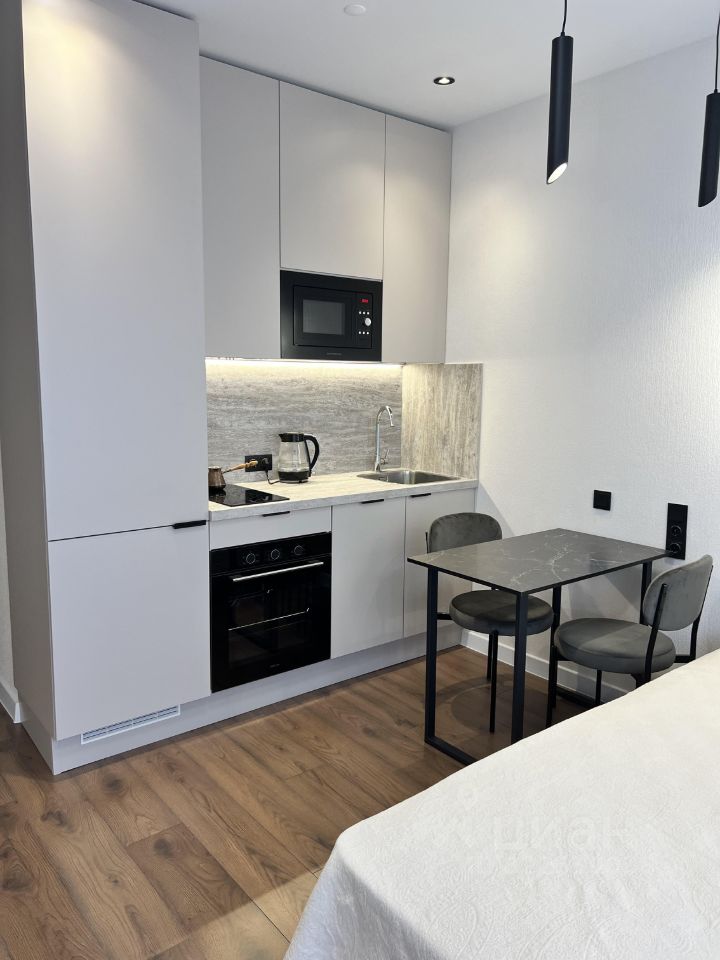 Апартаменты оформлены в стиле современного дизайна, что создает уютную и функциональную атмосферу. Просторная жилая зона в 19 кв. м позволяет удобно разместить мебель и бытовую технику. Кухня площадью 3 кв. м оборудована всем необходимым для комфортного приготовления пищи. В апартаментах также есть совмещенный санузел с современными сантехническими решениями. Окна выходят во двор, поэтому, а значит, в квартире всегда тихо и спокойно.
