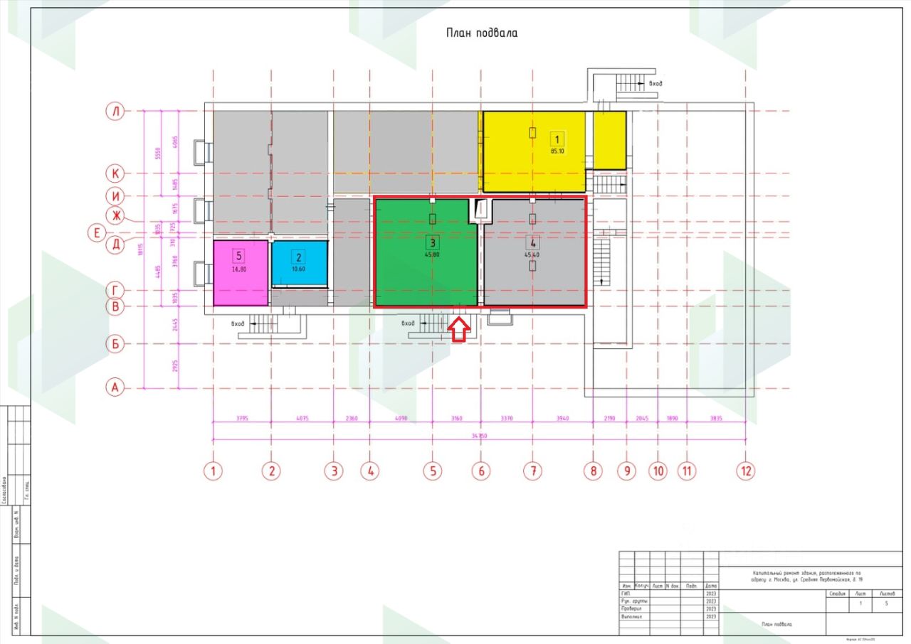 Помещение находится на -1этаже отдельно стоящего административного здания, на первом этаже супермаркет Пятерочка, на 2-3 этажах: офисы, студия йоги, детский центр, салон красоты и тд.