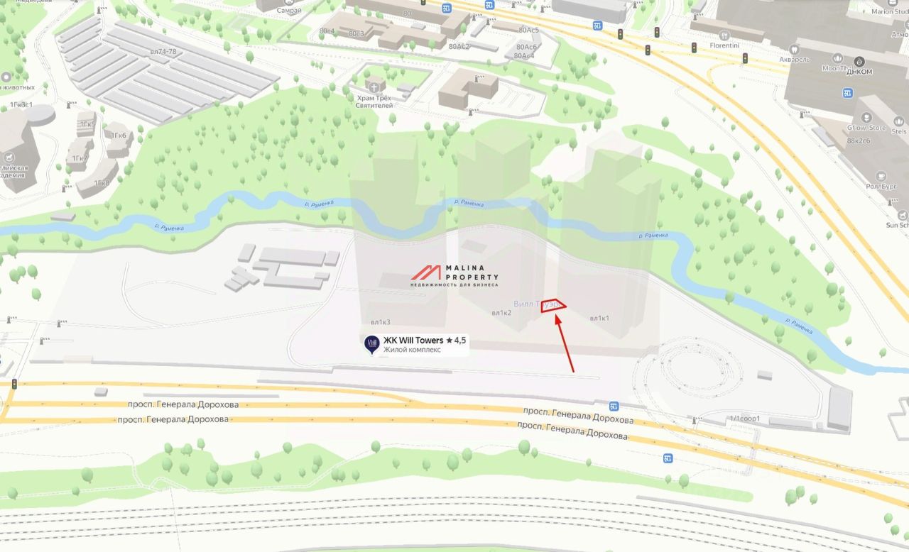 Аренда торгового помещения 125 м2 на 1-й линии в ЖК ''Will Towers'' на проспекте Генерала Дорохова, д. 49 (5 минут пешком от метро Минская).