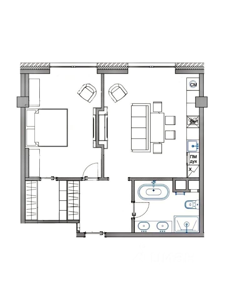 ПЛАНИРОВКА. Кухня-гостиная со встроенной кухней и мебелью, оснащенная всей необходимой бытовой техникой, включая посудомоечную машину, прихожая с вместительным шкафом, огромная ванная комната с душевой кабиной и отдельно стоящей ванной, спальня с просторной гардеробной комнатой. ОКНА ВЫХОДЯТ В ТИХИЙ ВНУТРЕННИЙ ДВОР.