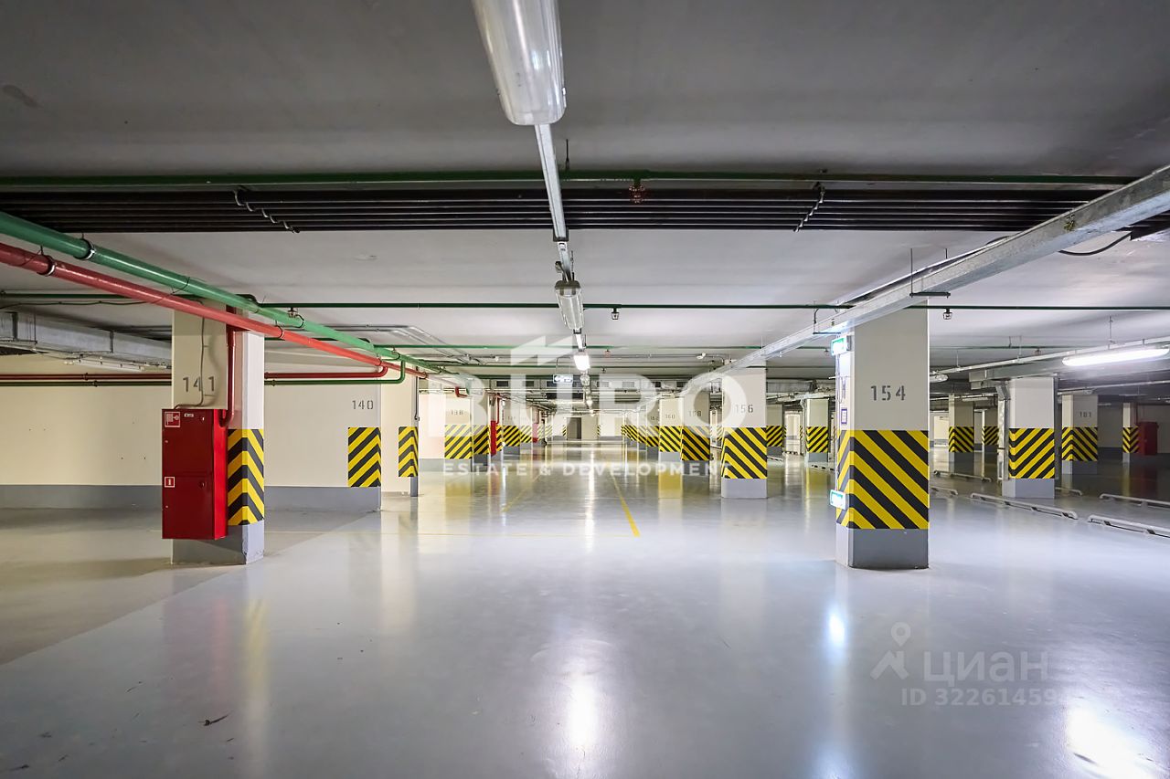 Имеется просторный подземный 3-х уровневый паркинг, где проводятся выставки и мероприятия. Также на подземных этажах есть кладовые комнаты.