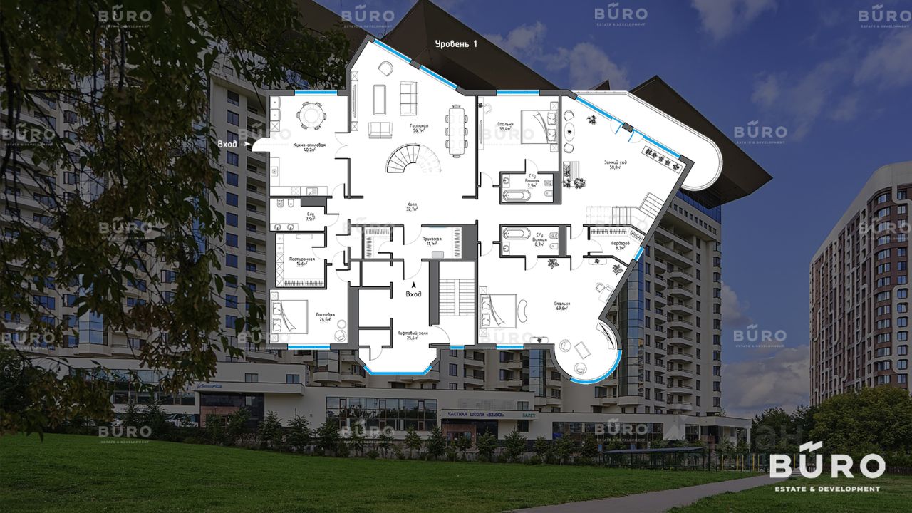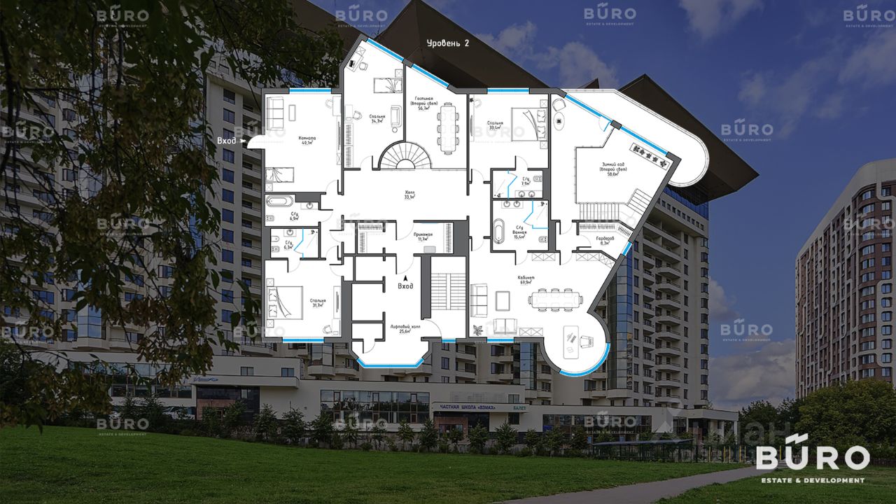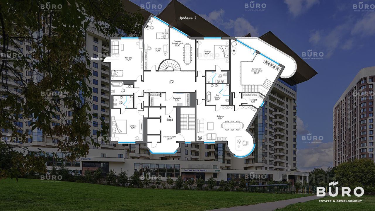 Продается большой двухуровневый пентхаус в ЖК премиум-класса Вавилово. Квартира площадью 764,1 кв. м. расположена на 13-14 этажах, с открытым видом на Москва-Сити. Планировка включает в себя: блок из 7-ми спален со своими санузлами, изолированных от основной части квартиры, кабинет 70,3 кв. м, кухня 40,2 кв. м. + гостиная 66,6 кв. м., зимний сад 58 кв. м. с высоким потолком 6 м, 2 лоджии.