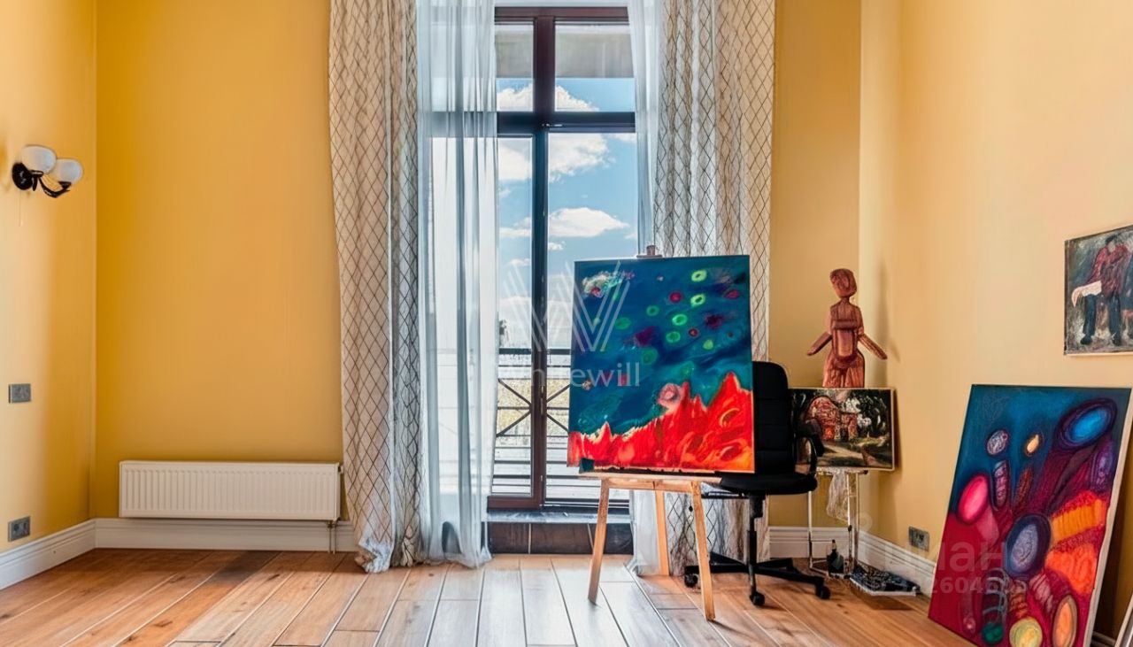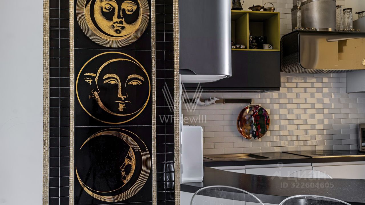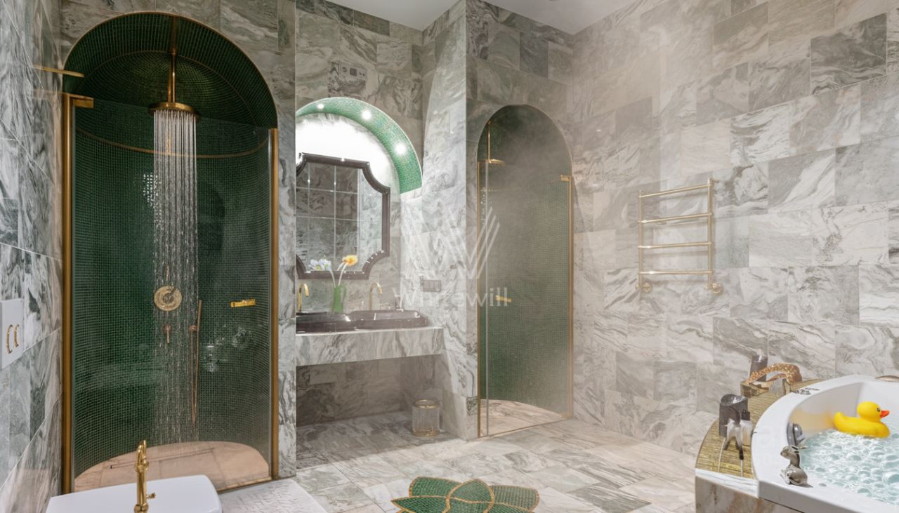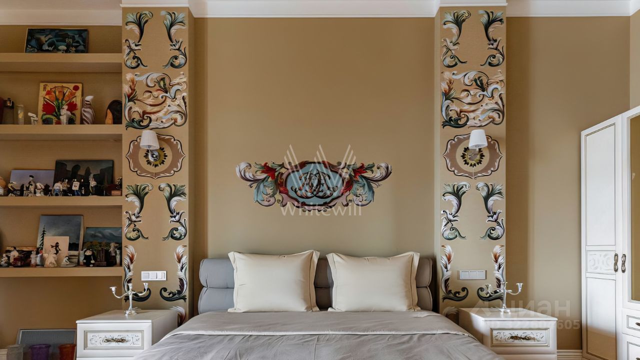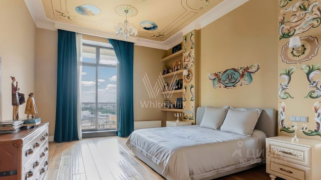 Просторная квартира с двумя спальнями общей площадью 120 м² в комплексе премиум-класса ''Онегин'' на 7 этаже. Выполнена авторская отделка в светлых тонах, интерьеры украшает графика на стенах и потолках. В оформлении использованы фактуры гранита и дерева. Квартира укомплектована мебелью и бытовой техникой.