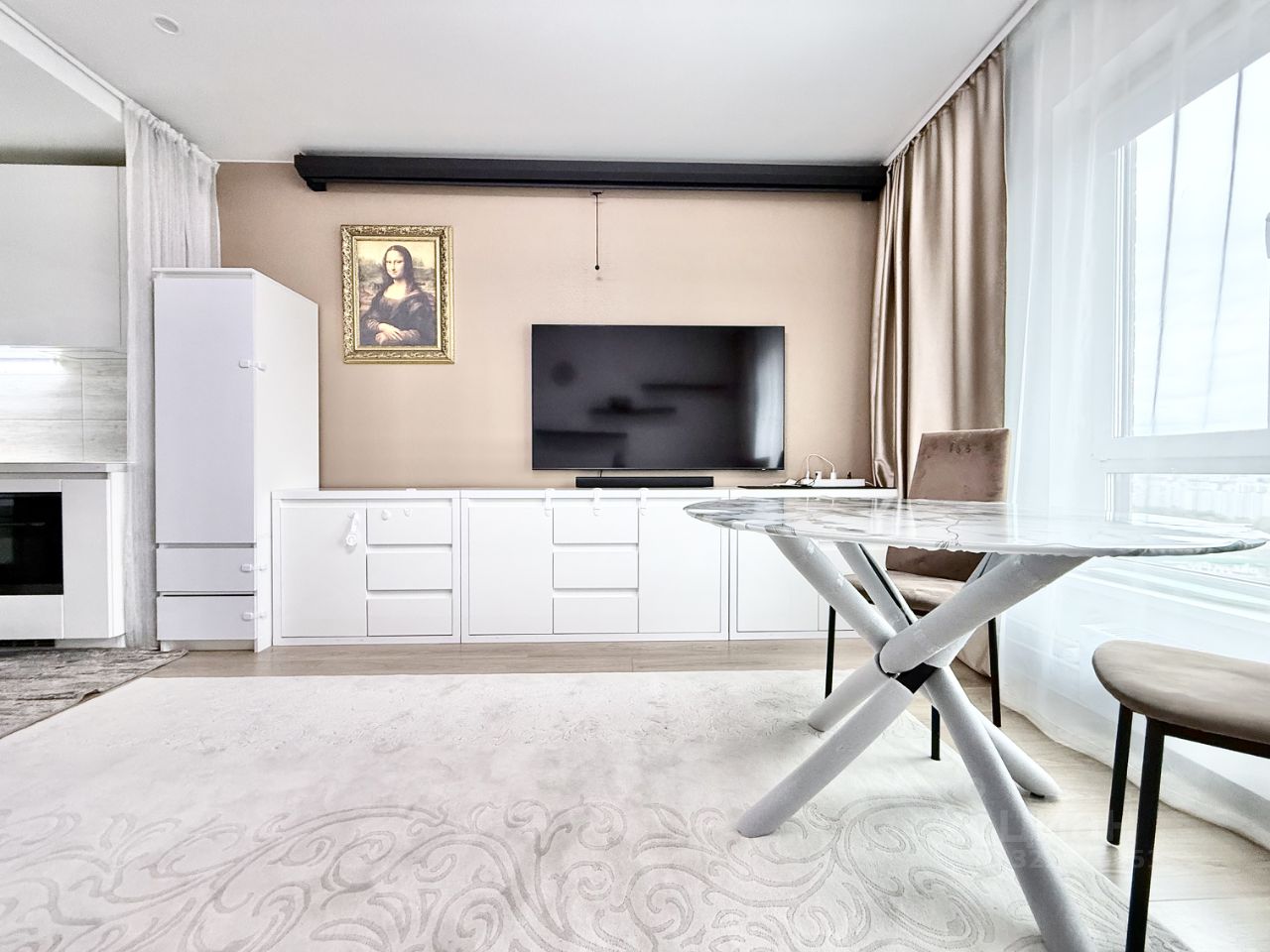 Квартира с евроремонтом, в идеальном состоянии, готова к проживанию. В ней есть все, что нужно для комфортной жизни: стильная мебель, современная техника, уютная кухня площадью 5 кв. м и совмещенный санузел. Высокие потолки 2,62 метра и окна, выходящие на улицу, создают ощущение простора и света.