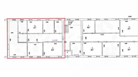 Кабинетная планировка, разбиты на . , свои кухня и санузел. Данное крыло отделено дверью с магнитным замком. Интернет разведен на кабинеты.