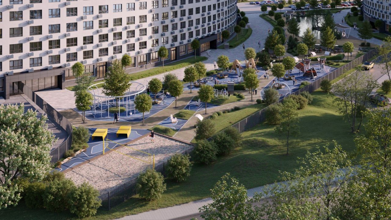 Зона уединения: Места для занятия йогой и медитаций Мульти скворечники Качели с подсветкой для уютных бесед Высокие скамейки на набережной для отдыха и чтения на свежем воздухе Активная зона: Развивающие детские площадки для разных возрастов Спортивные площадки с зоной Ворк-аут, Столы для настольного тенниса Площадка для пляжного волейбола