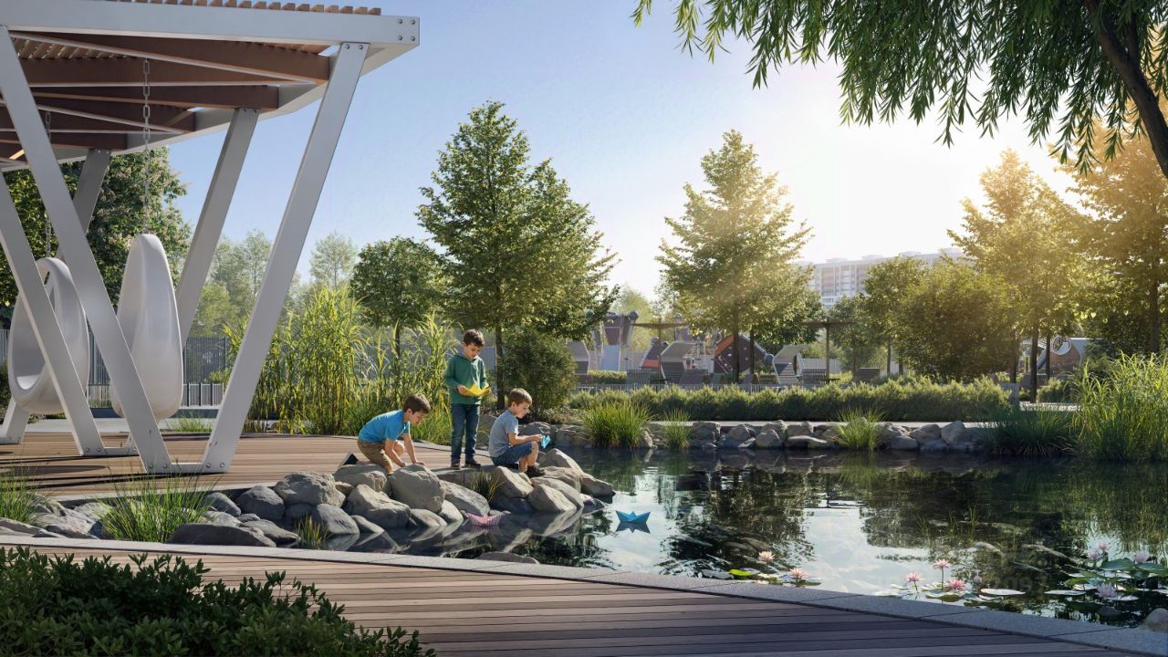 В самом сердце двора раскинулся собственный водоём — не просто украшение, а часть вашей повседневной жизни. Летом — это благоустроенная набережная для прогулок, отдыха в тени деревьев и тихих вечеров у воды. А зимой водоём превращается в залитый каток — место, где звучит смех, скользят коньки и рождаются семейные традиции. Здесь каждое время года раскрывает свой характер.