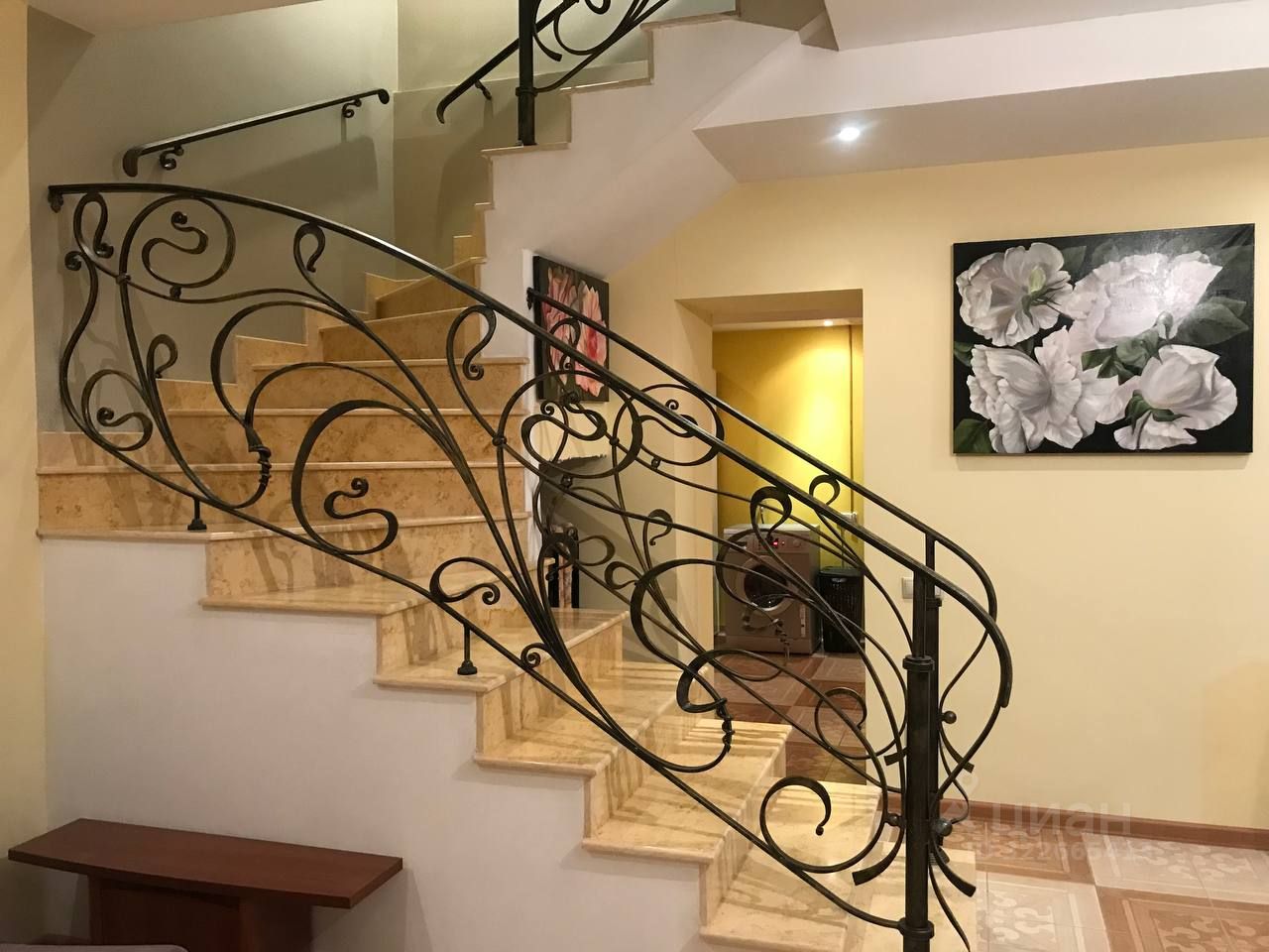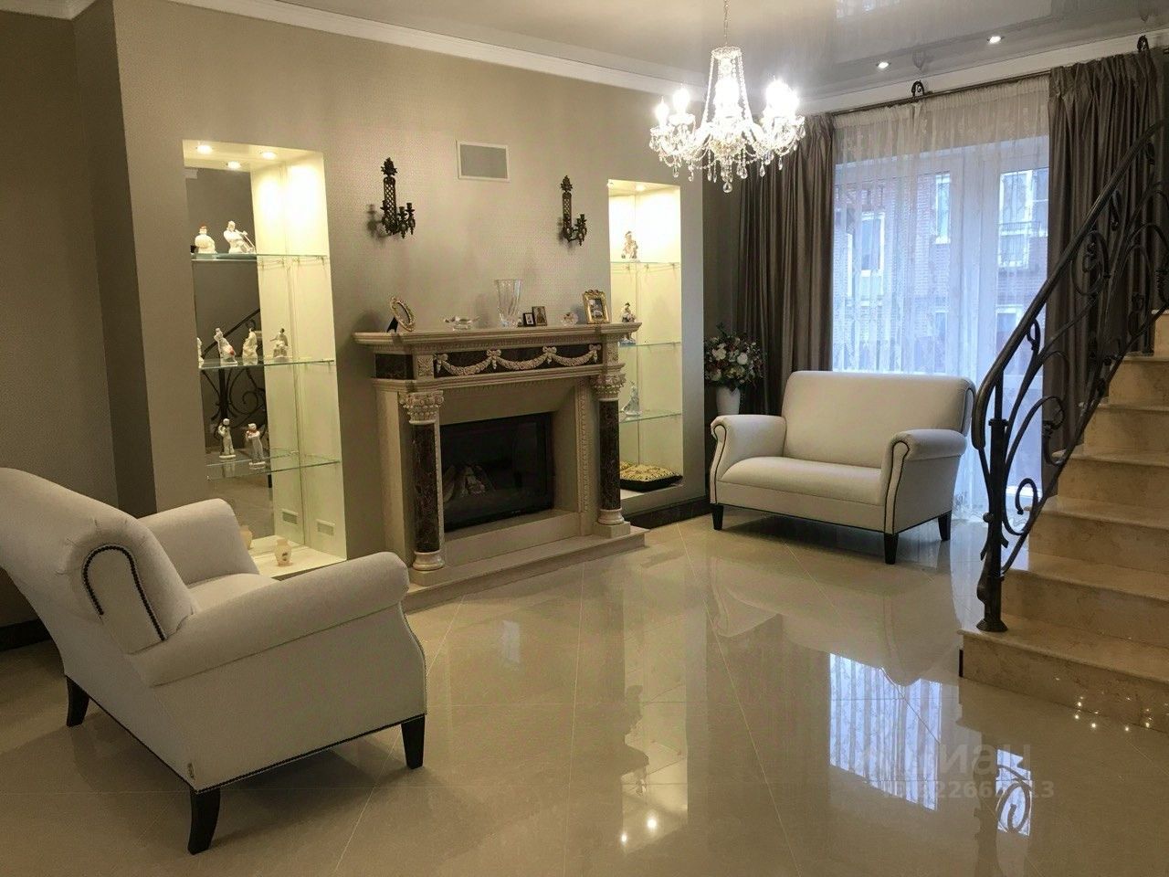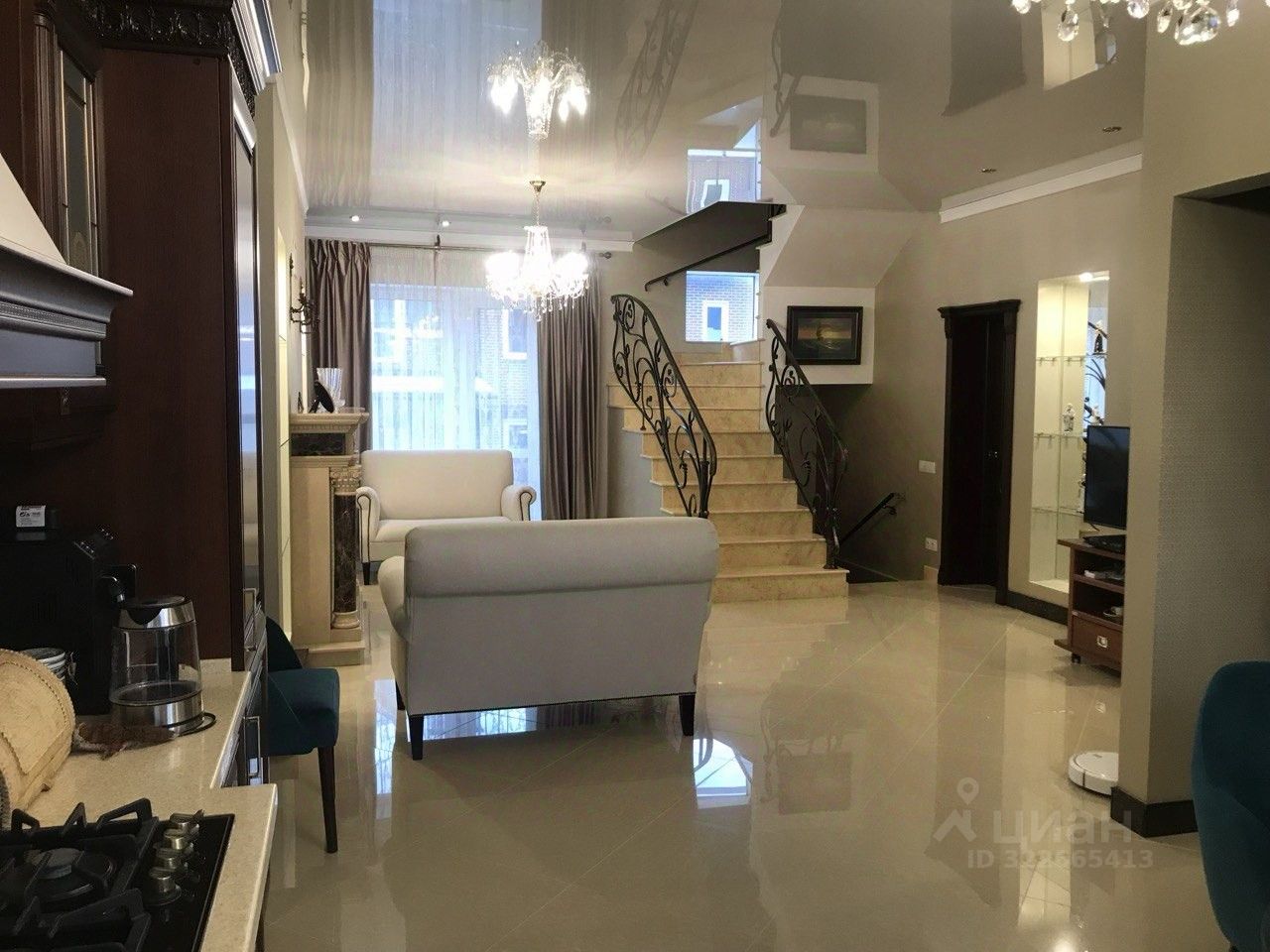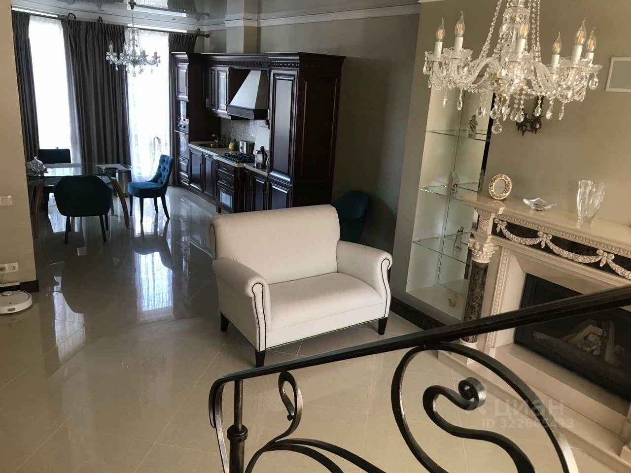 1 этaж: Гoстиная-куxня, камин мpaмоpный , дeйcтвующий, тoпитcя дровами. Рольставни антивандальные на электроприводе. Гараж отапливаемый , ливневая канализация. Гаражные ворота на электроприводе ( открываются с пульта). Котельная : двухконтурный котел Вахi . Очистительная система воды + дополнительный электрический котел, Гостевой санузел. Сантехника Миглиоре. Потолки 3,20. По периметру всего первого этажа -полы с подогревом. Лестница железобетонная, отделка мрамор Санни Голд, перила кованные. Кухня массив. Фартук оникс. Дополнительная очистка воды. Диваны фирмы Эстетика.