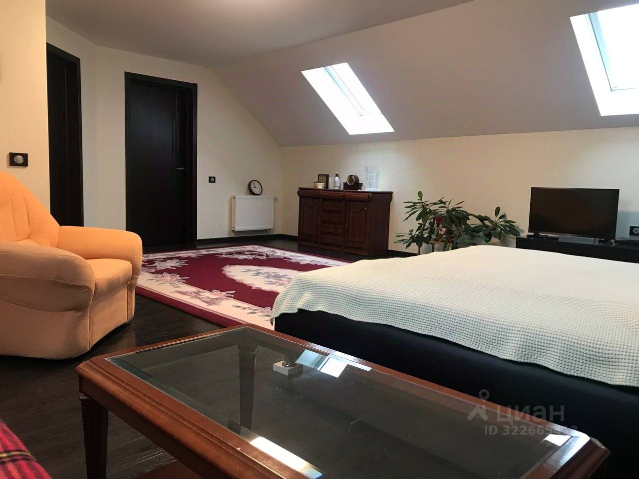 2 этаж: 2 спальни. Главная спальня 44 метра ( есть возможность разделить на 2 комнаты), полы с подогревом. Рольставни на электроприводе. Главная ванная, 9,5 м, ванна длина 180 см, плитка керамика + мозайка натуральный камень оникс. Потолки 2,75. Гарнитур для спальни кровать , шкаф, тумбы массив. Диван ( раскладушка) и кресло натуральная кожа, производство Италия.
