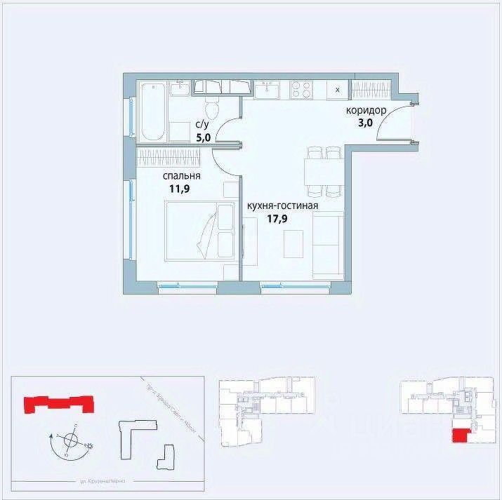 продам 1-к, Крузенштерна, 718 300 000 ₽